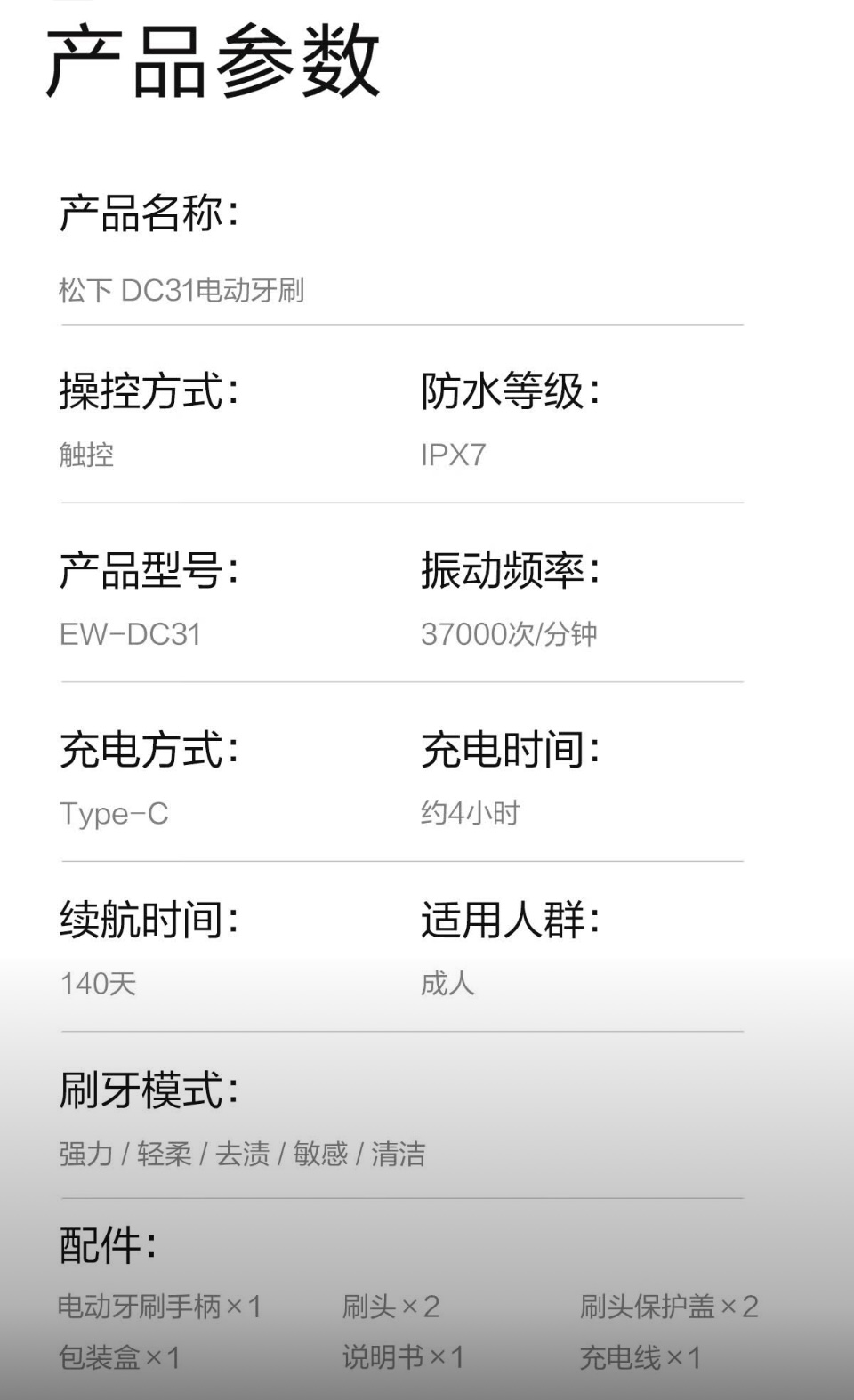 【春上新】10楼 松下 电动牙刷 声波情侣5种模式去渍护龈双效滑动解锁电动牙刷EW一DC31 吊牌价699元 活动价399元