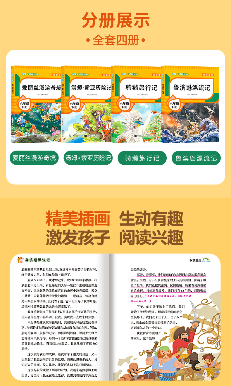 快乐读书吧六年级下册必读的课外书鲁滨逊漂流记正版书目汤姆索亚历险记全套尼尔斯骑鹅旅行记爱丽丝漫游奇境米尔斯骑鹅企鹅旅行记