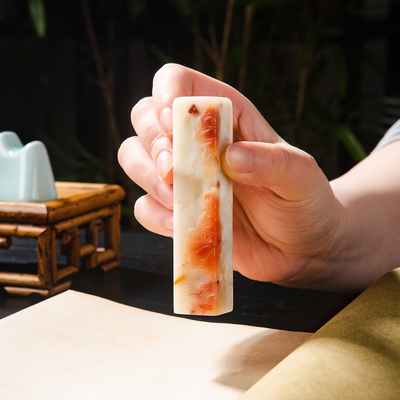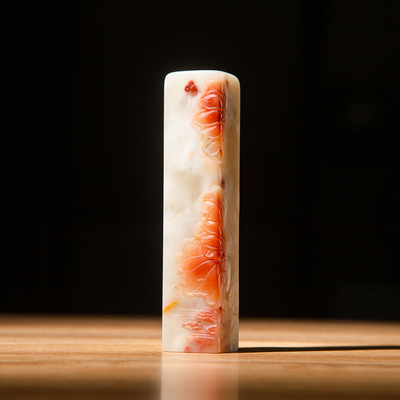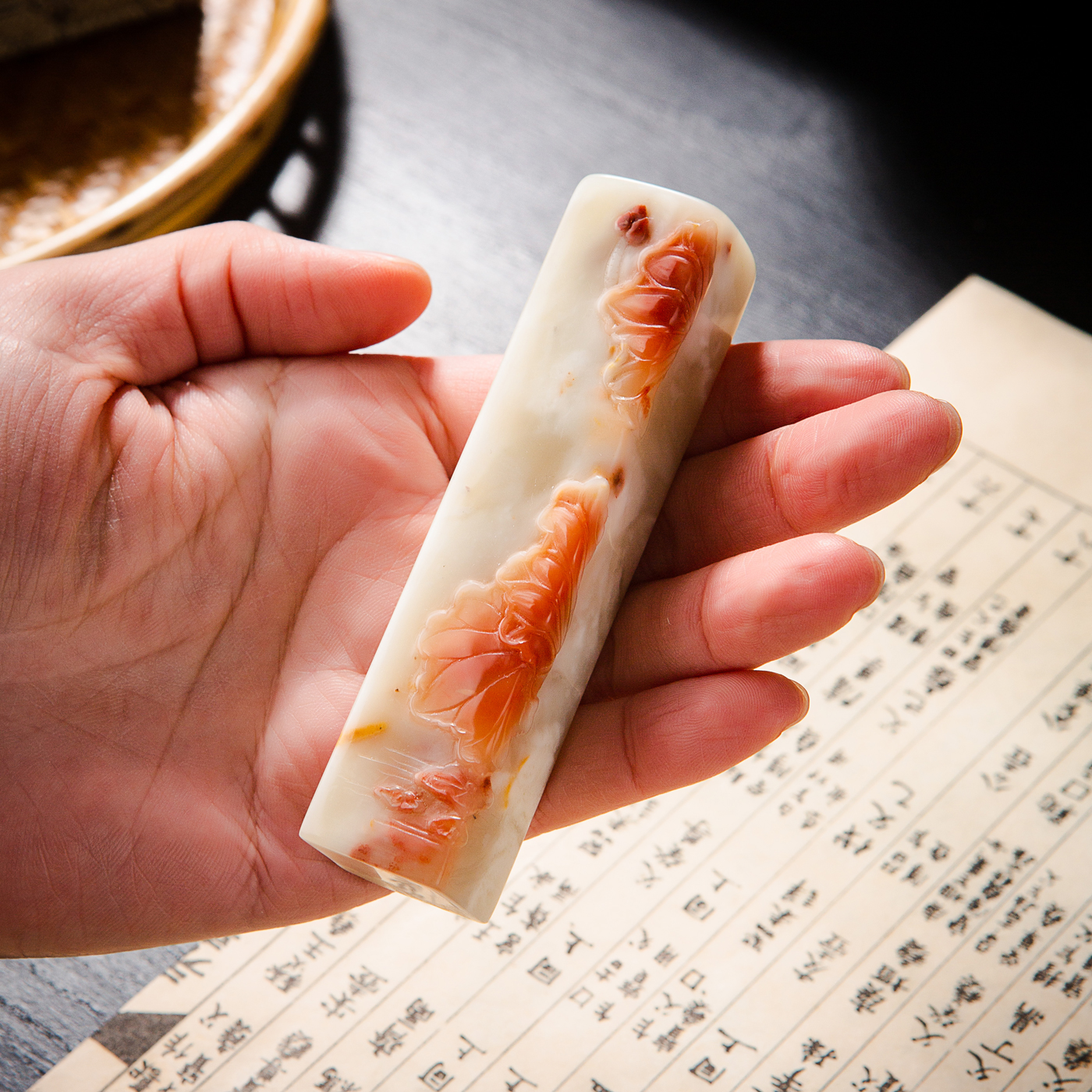 纯手工精雕印石,用料为存放几十年的老料,其雕工精美,质地温润,石性稳定,极为难得。