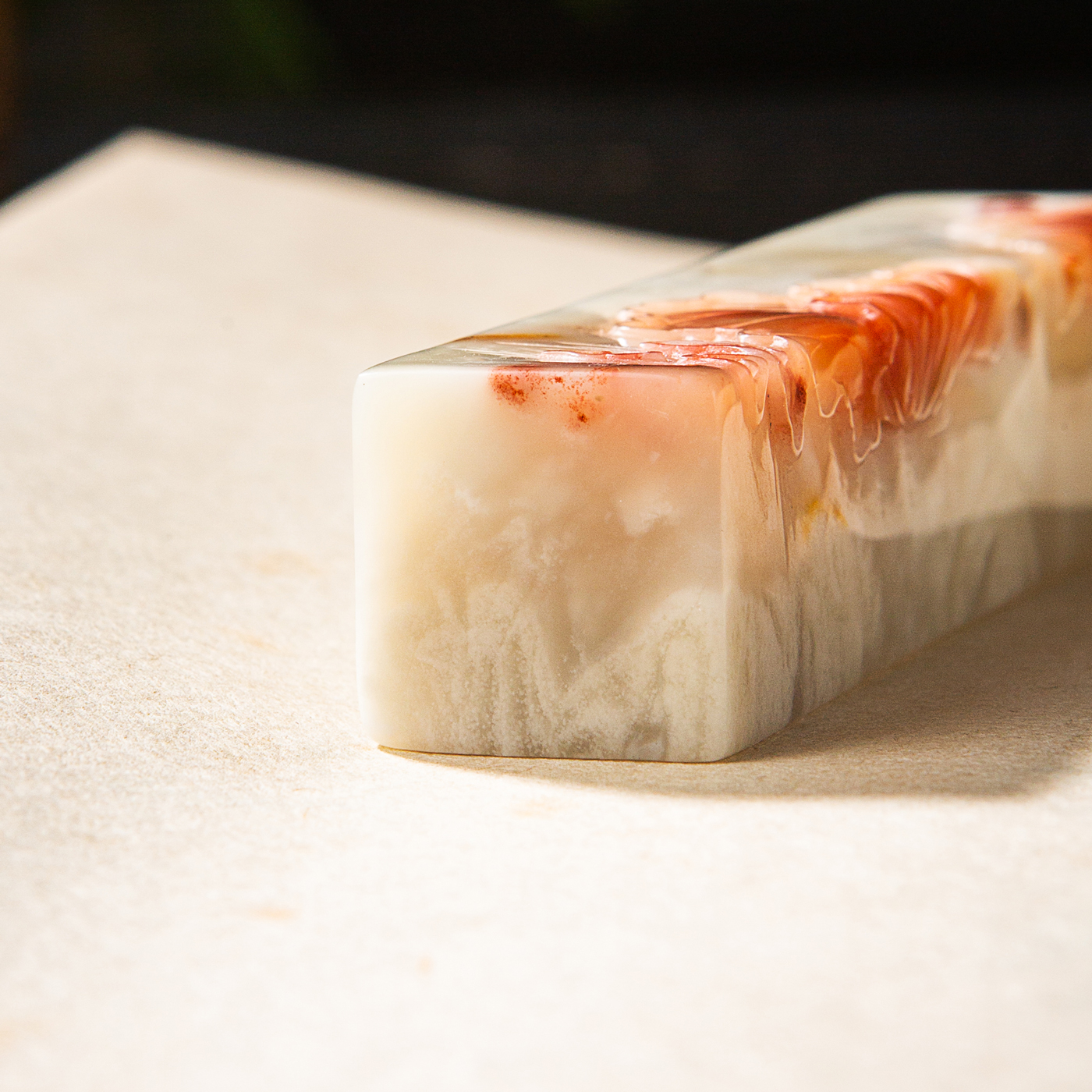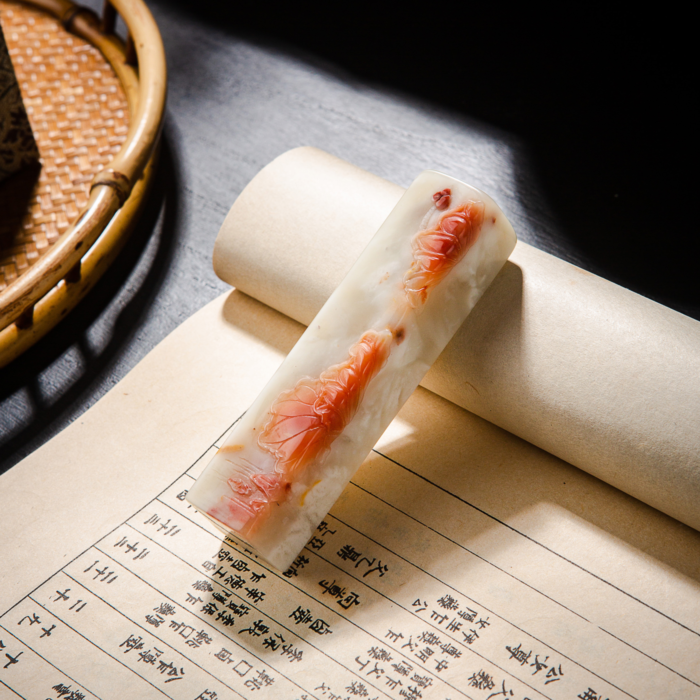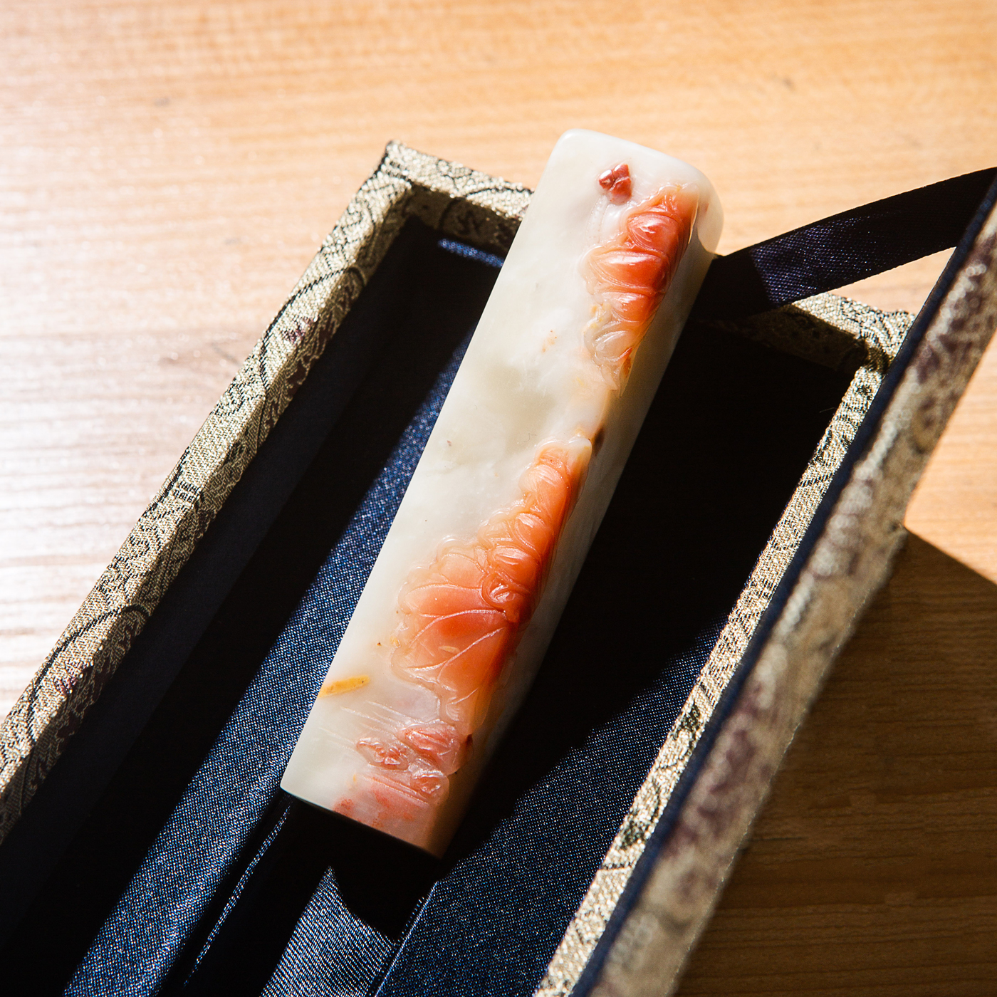 纯手工精雕印石,用料为存放几十年的老料,其雕工精美,质地温润,石性稳定,极为难得。