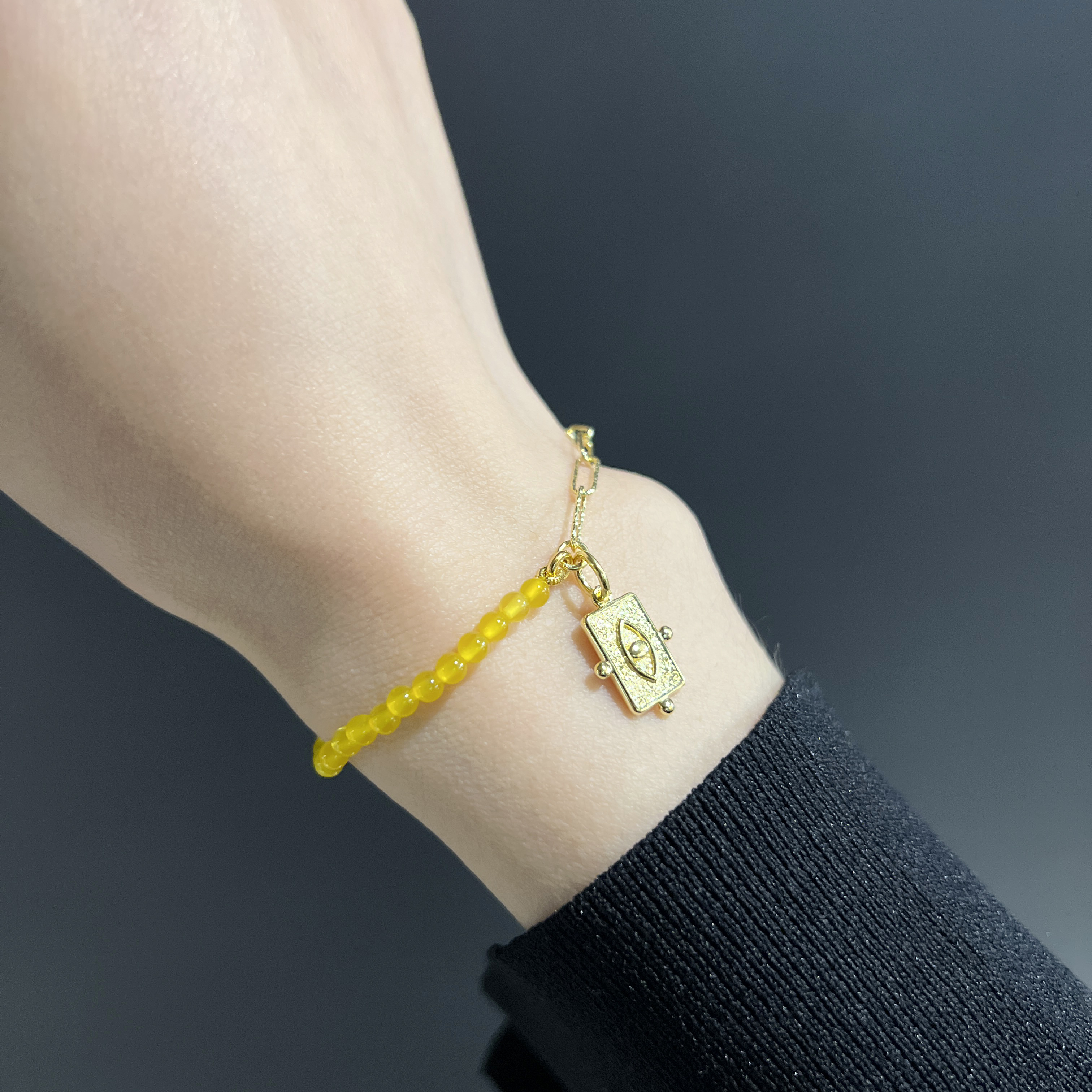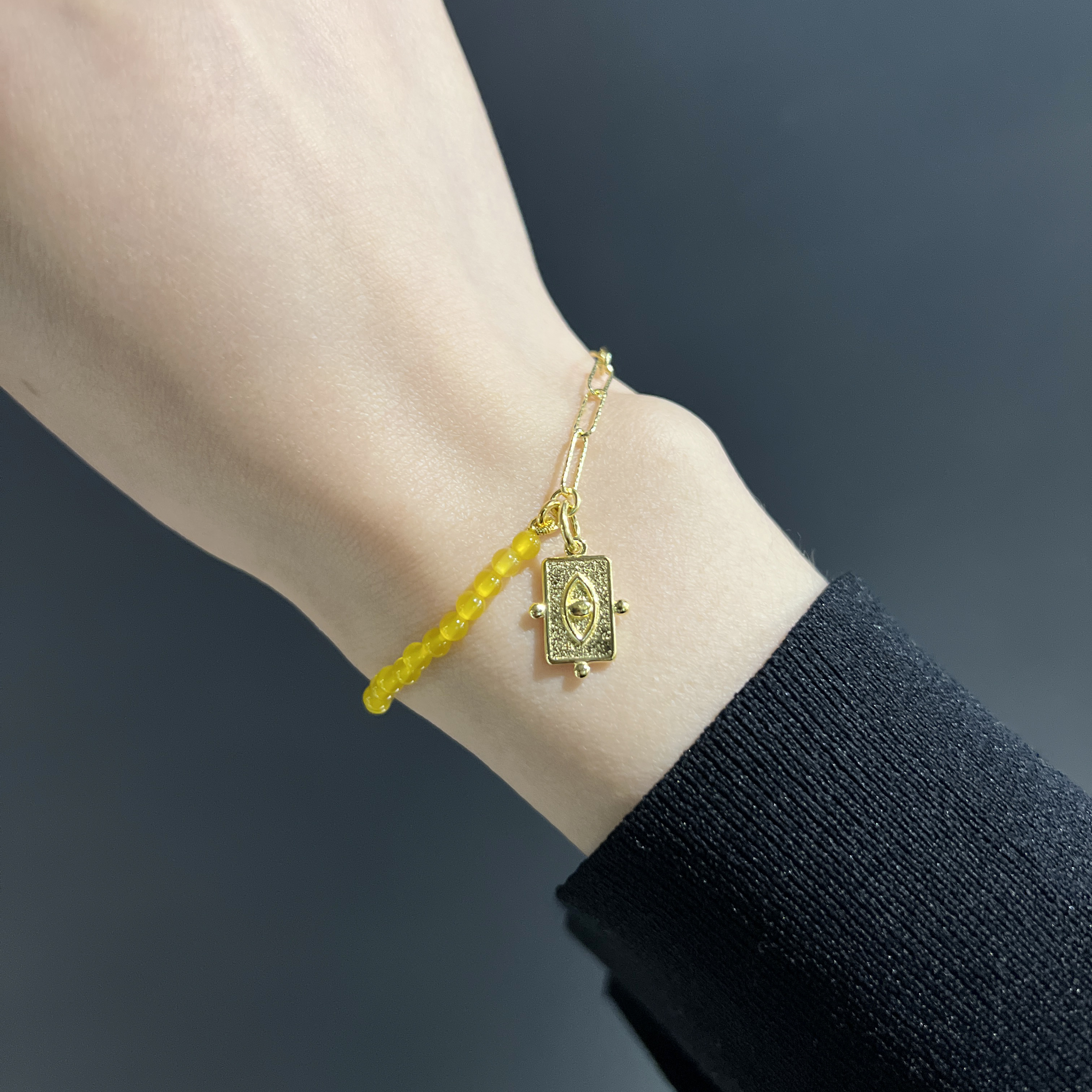 北京仓|Barbóra-Eye-眼睛金币 黄玛瑙 手链[希腊设计师]