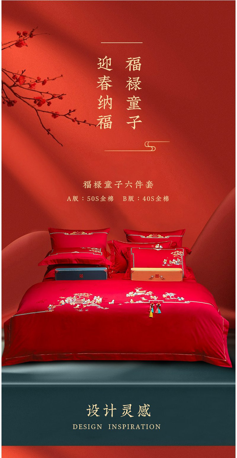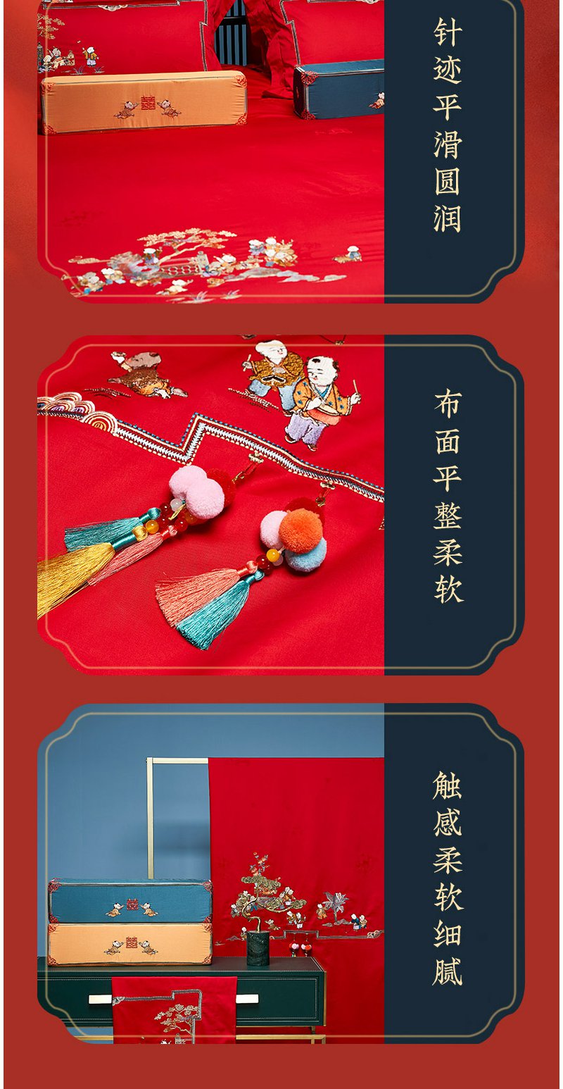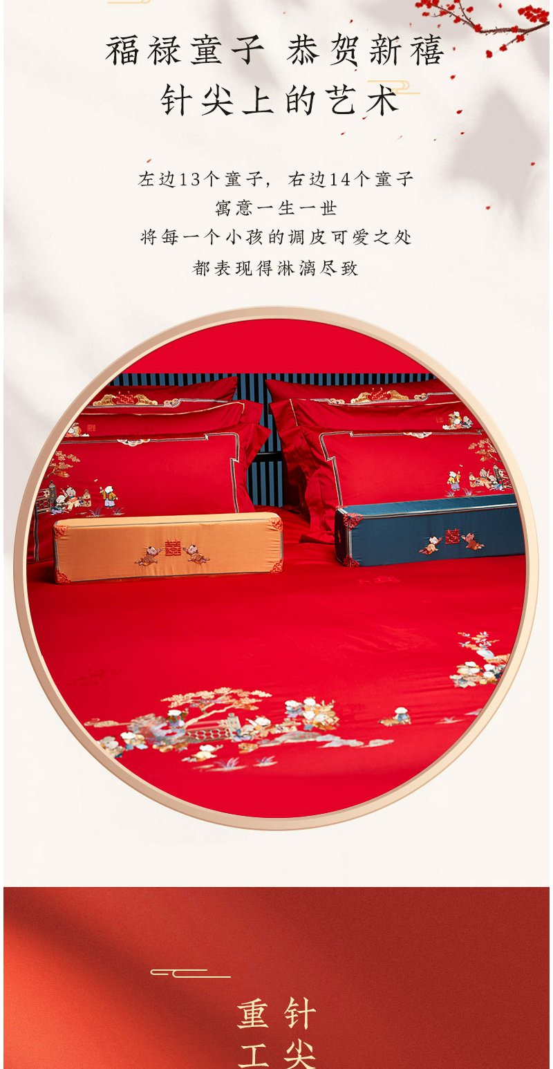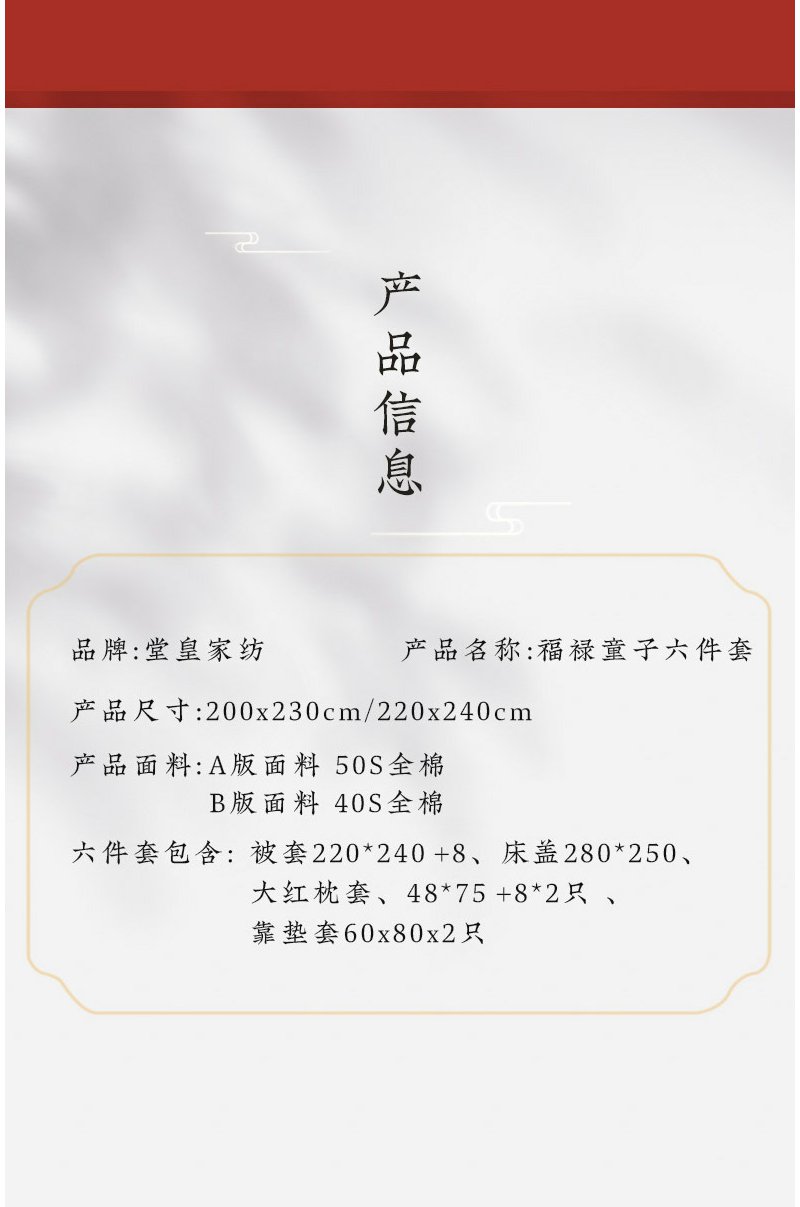 【6F】堂皇家纺 婚庆刺绣纯棉六件套 福禄童子