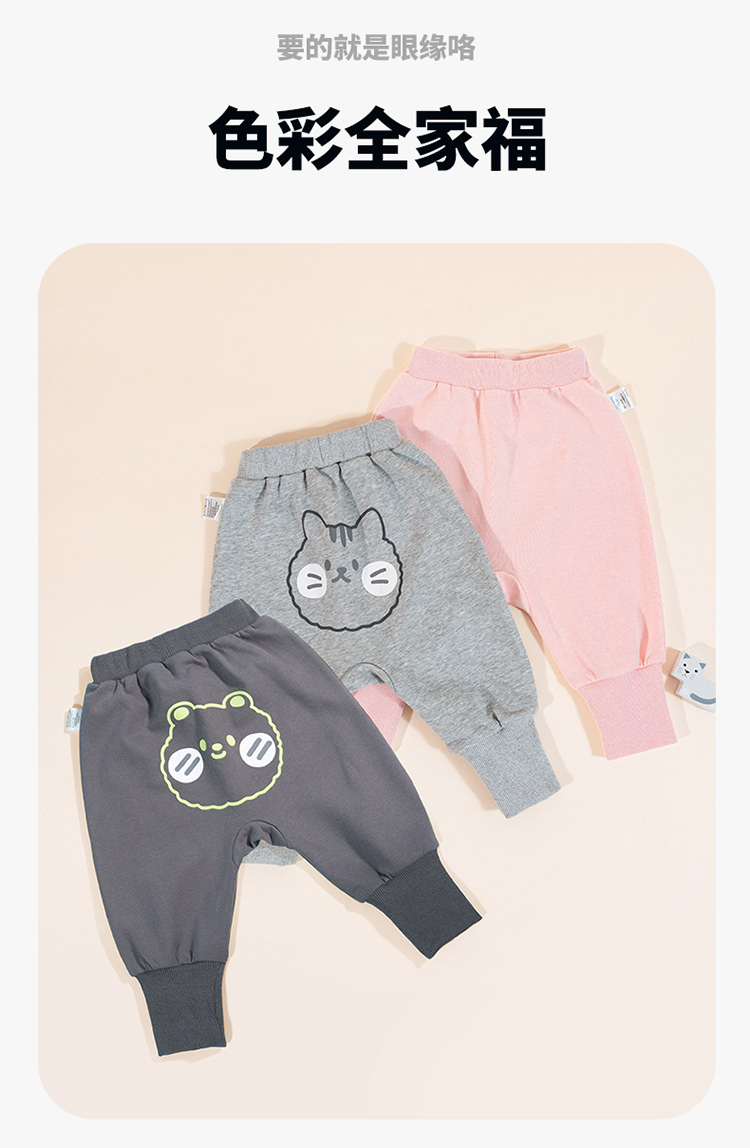 贝贝怡童装春秋新款儿童宽松束脚长裤男女童休闲裤宝宝卡通PP裤233K2547