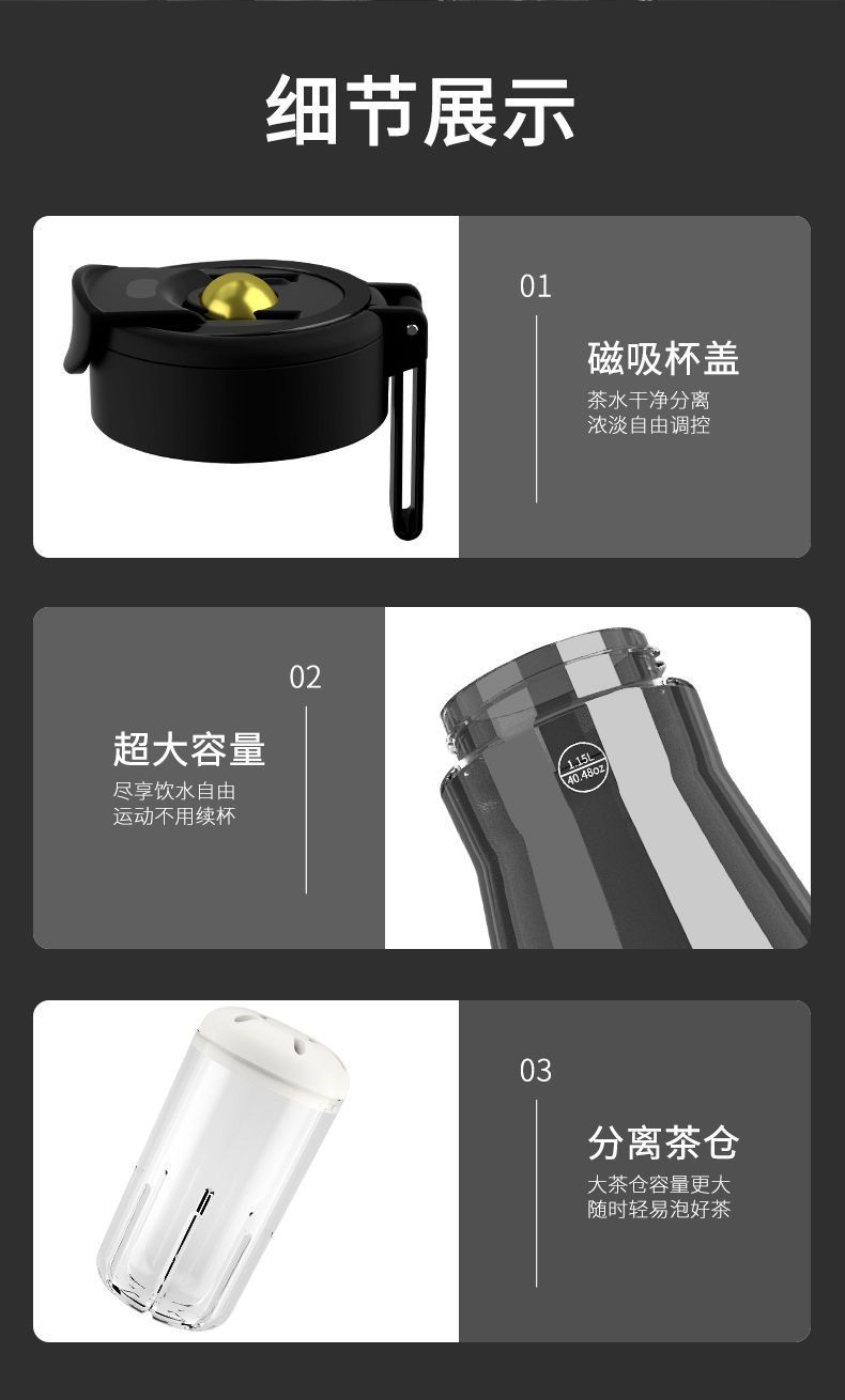 【999+正在抢购】诺百纷三代磁弹泡茶杯进口塑料便携磁力杯大容量