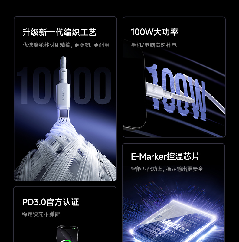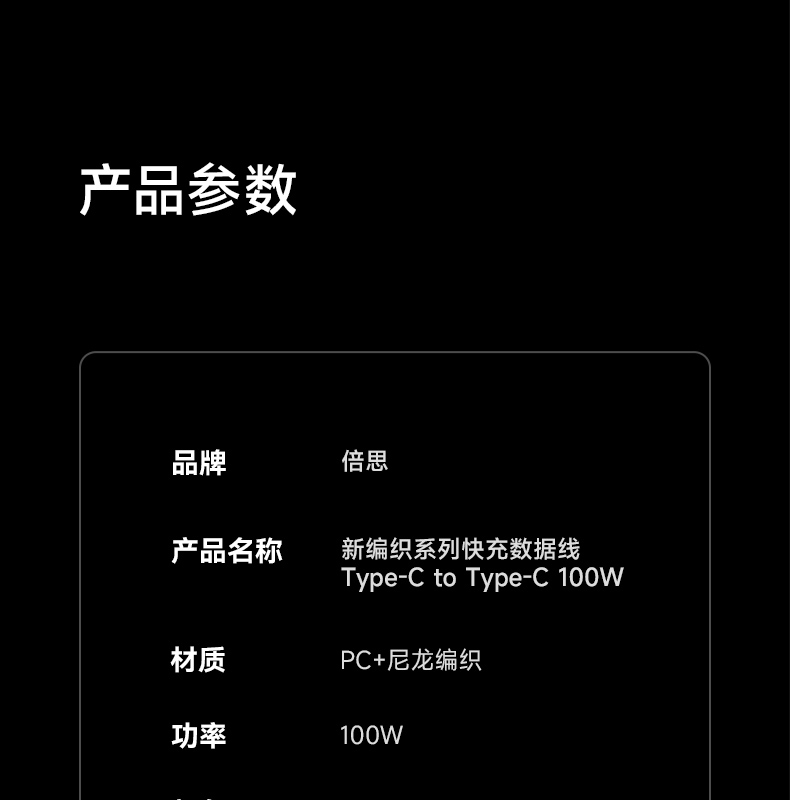 倍思 新编织系列 快充数据线Type-C to Type-C 100W
