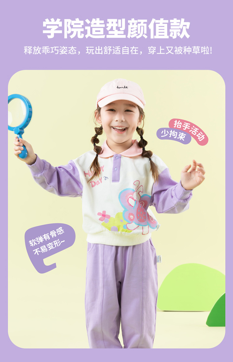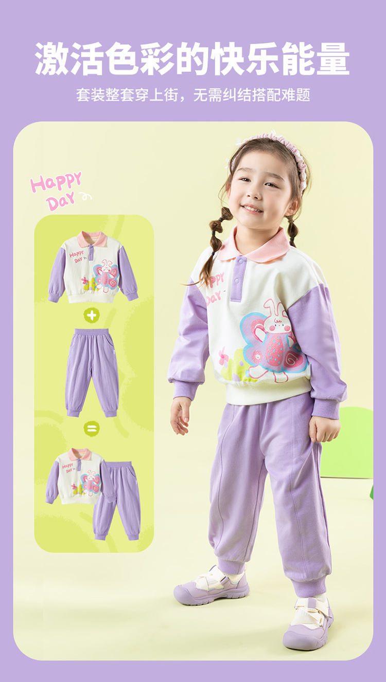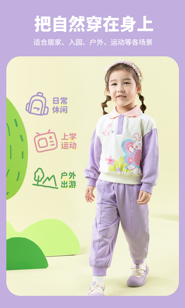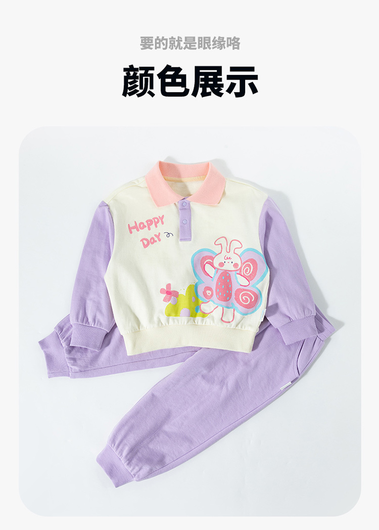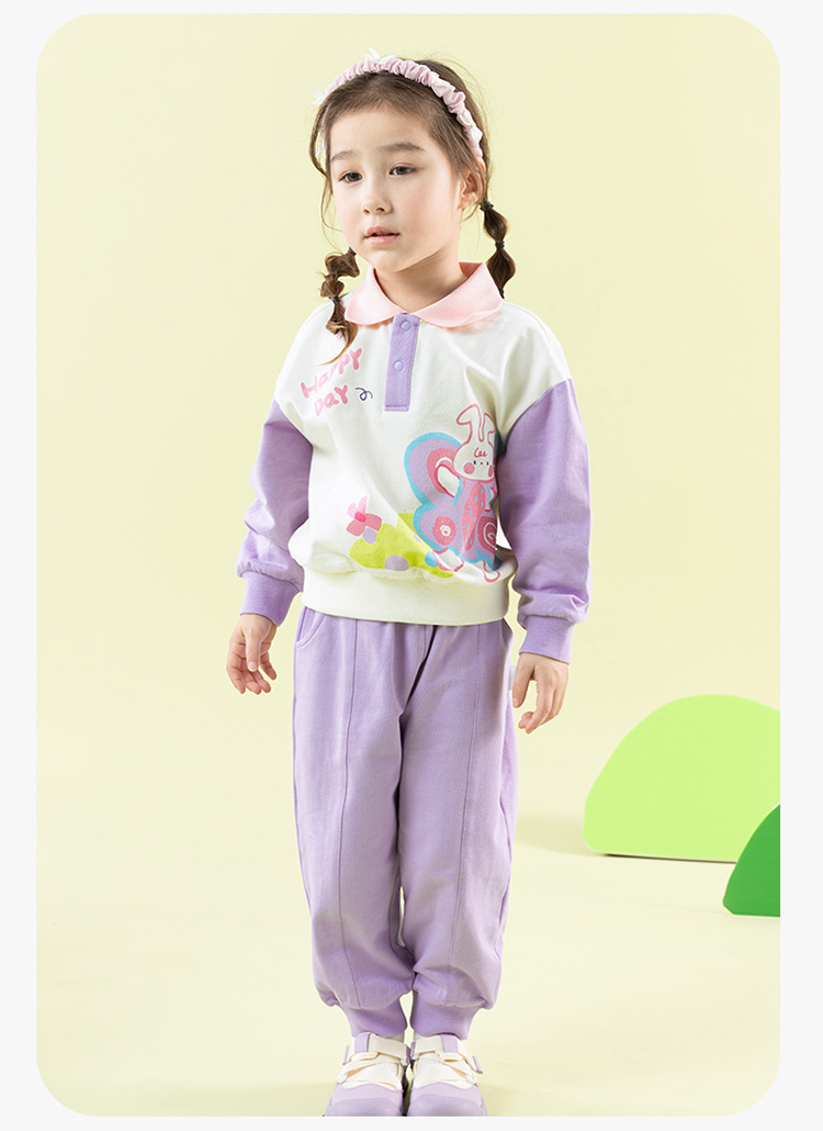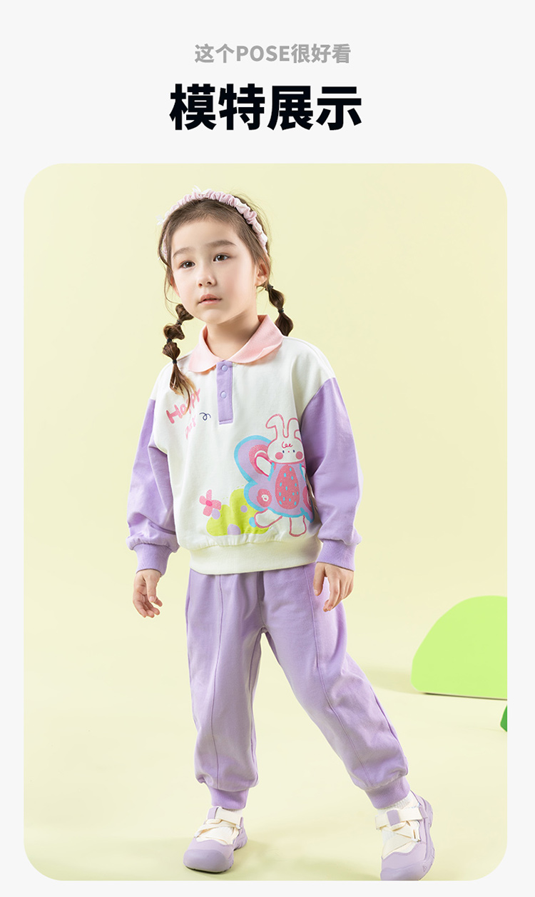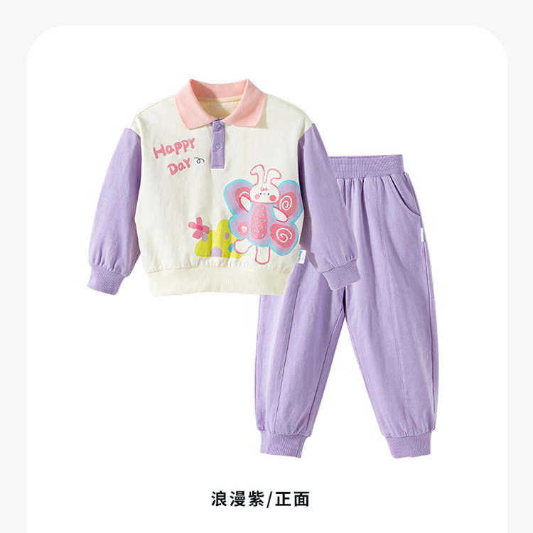 ZB1ET007贝贝怡童装女童套装两件套纯棉2024新款卫衣春秋儿童休闲长裤
