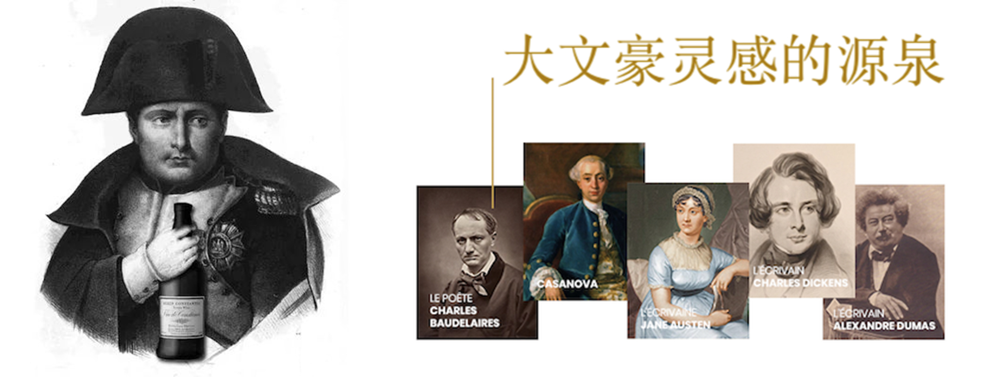 4、从18世纪到19世纪,康斯坦提亚(Constantia)葡萄酒已经享誉全球,人们为了得到它不惜花费黄金的价格,欧洲皇室甚至法国拿破仑都是它的粉丝!当时的文艺青年大仲马与小仲马,简·奥斯汀,查尔斯狄更斯和波特莱尔还把康斯坦提亚葡萄酒写到了他们的书里!康斯坦尼亚甜酒硬是凭借着一己之力打入欧洲上流社会,完成了酒庄的逆袭和复兴!是完全意义上的