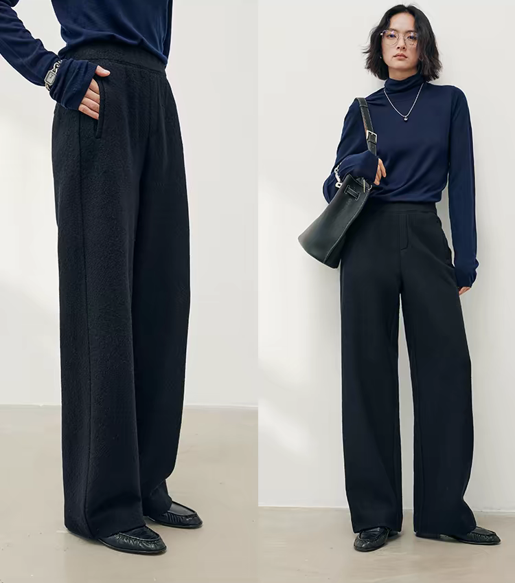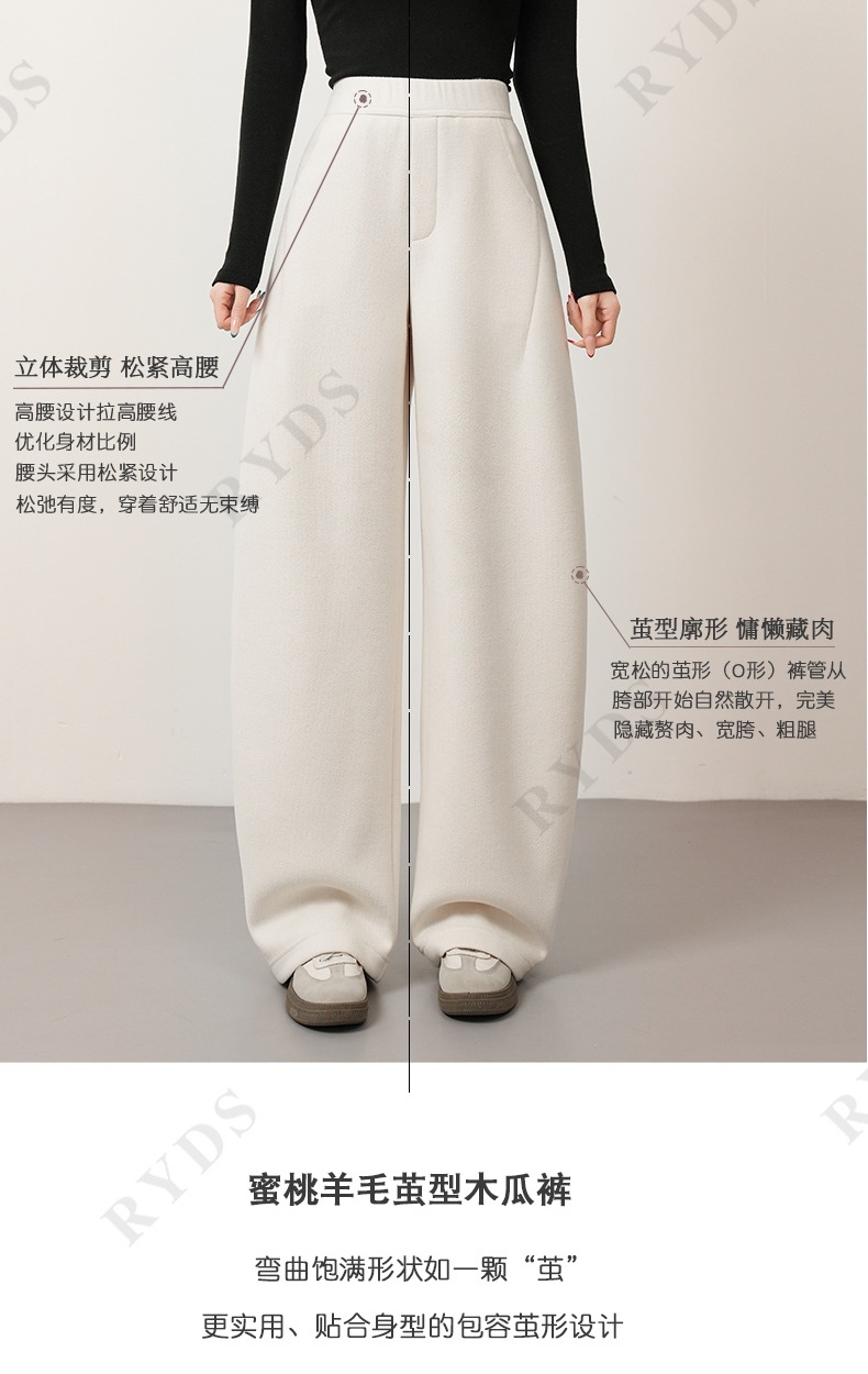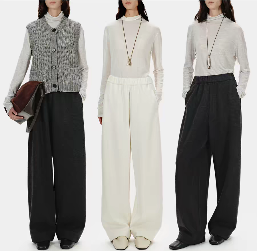 茧型廓形慵懒藏肉,宽松的茧形(O形)裤管从胯部开始自然散开,完美隐藏赘肉,宽胯粗腿。
