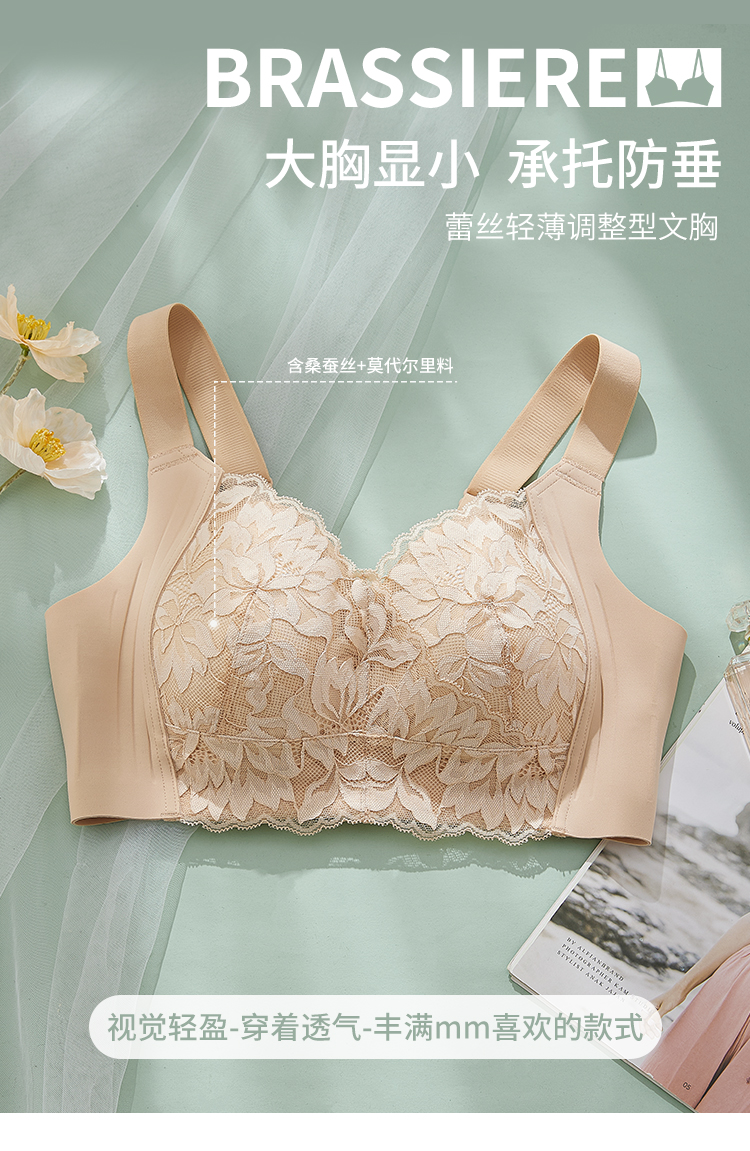 雅黛丽内衣女大胸显小轻薄调整型文胸聚拢承托防下垂清爽透气女士胸罩