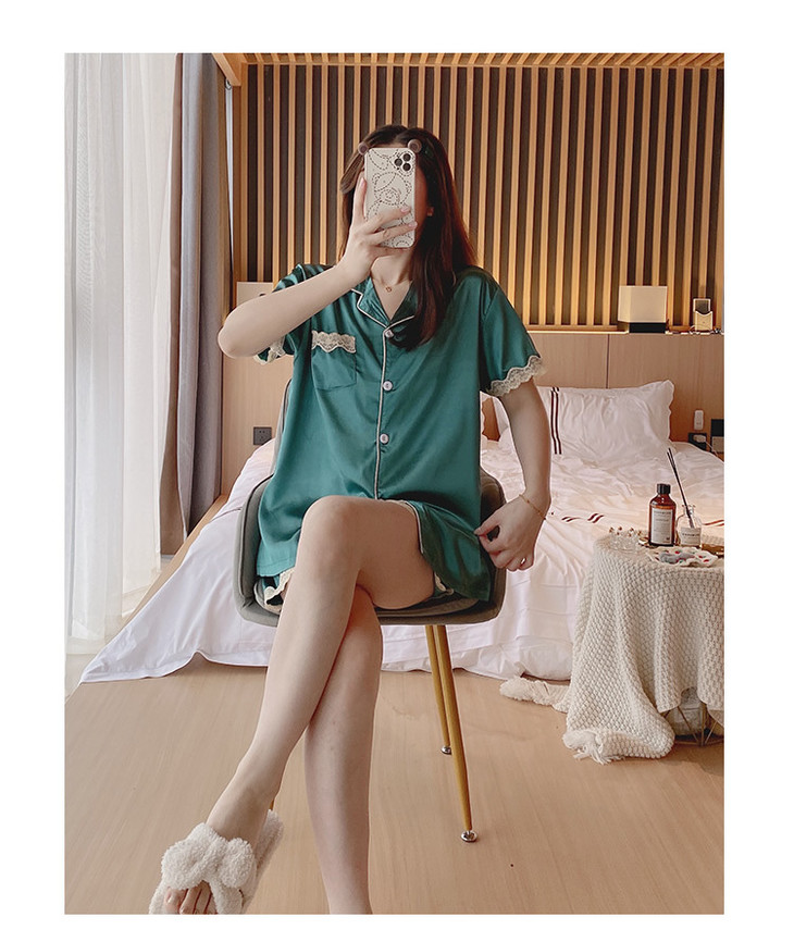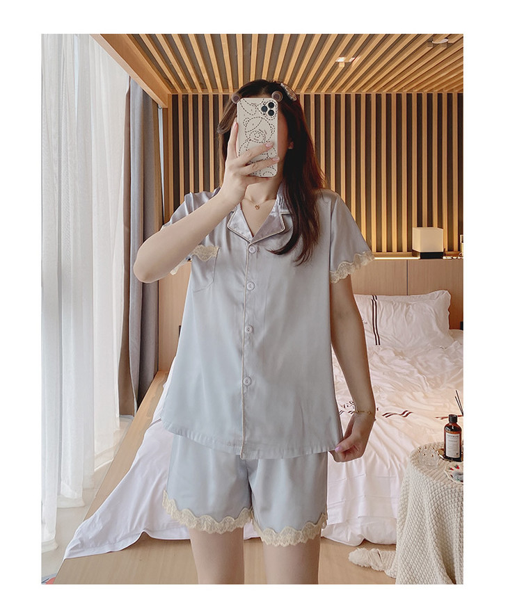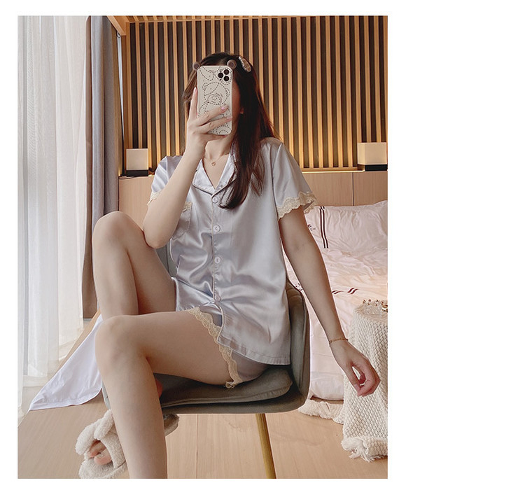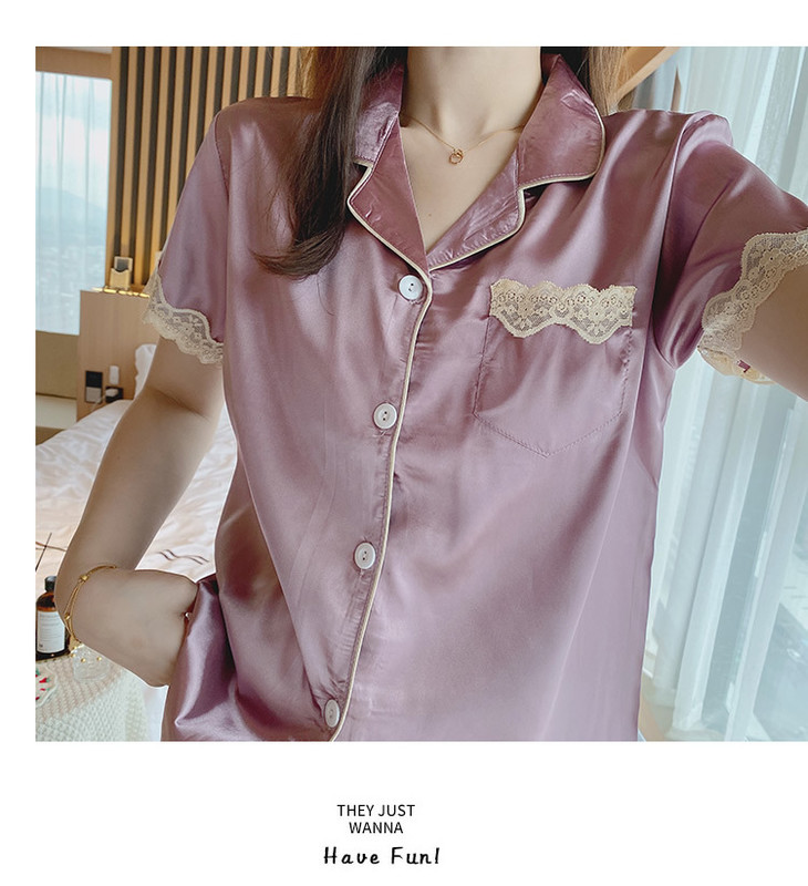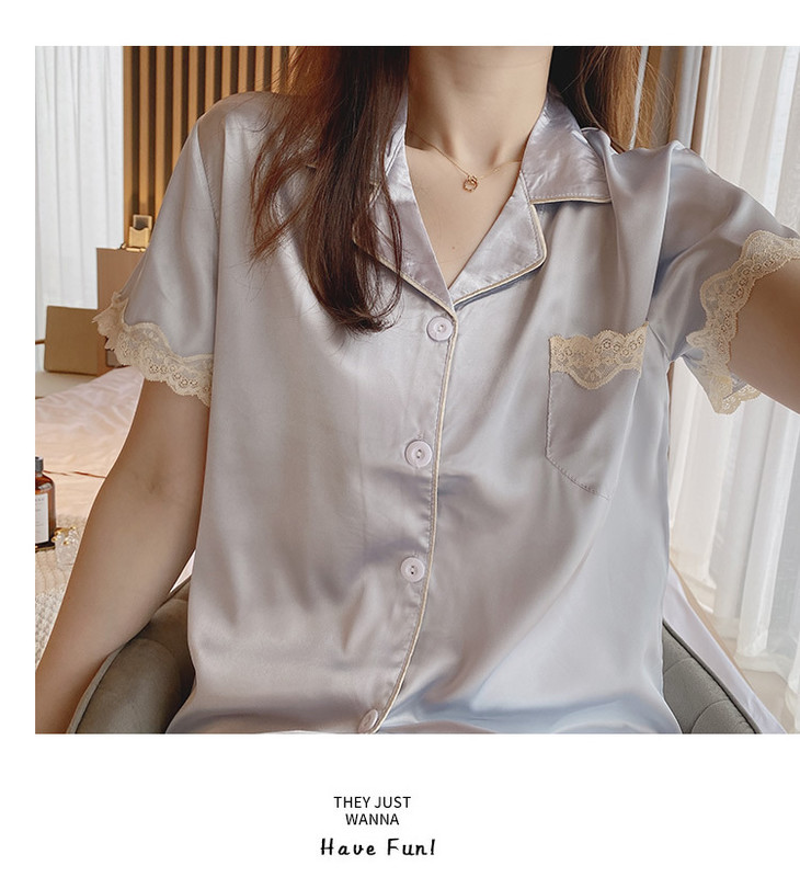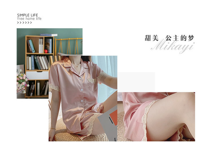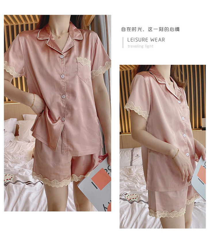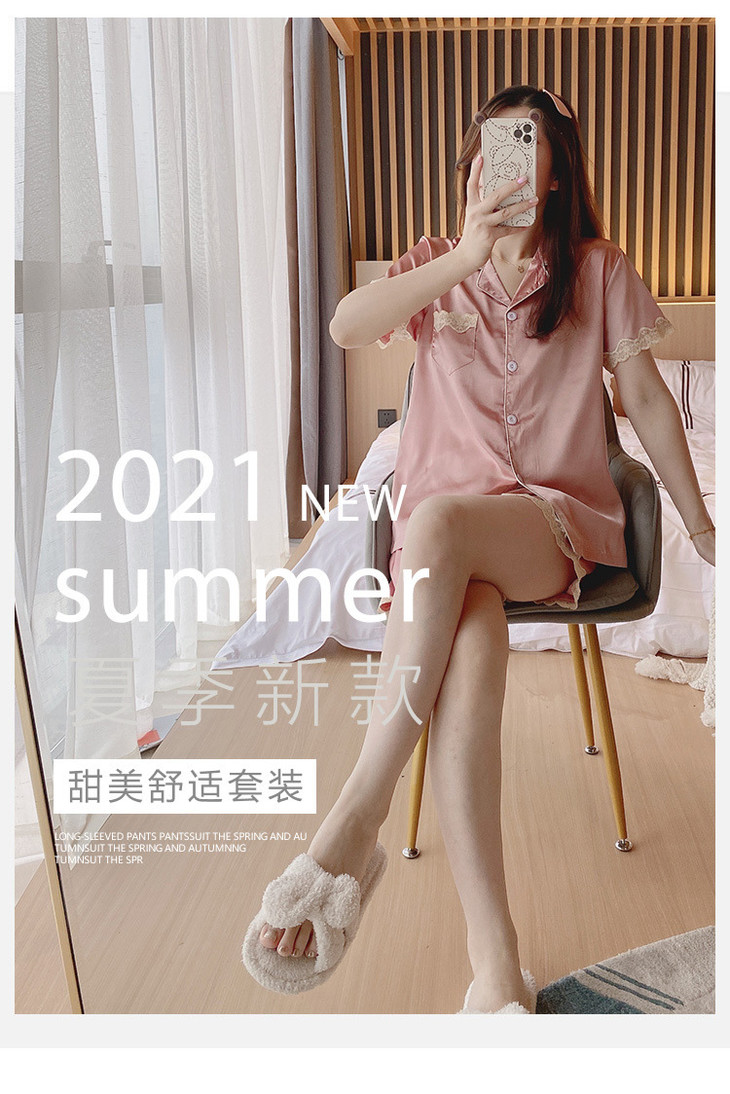 【服饰鞋包】夏季睡衣女冰丝薄款短袖套装开衫蕾丝花边家居服