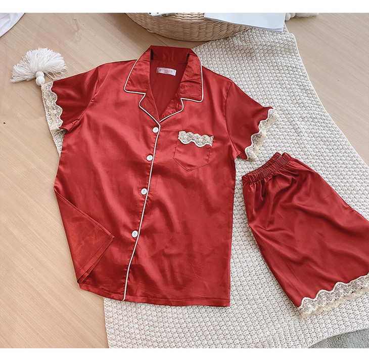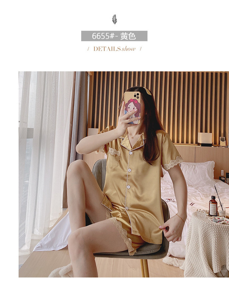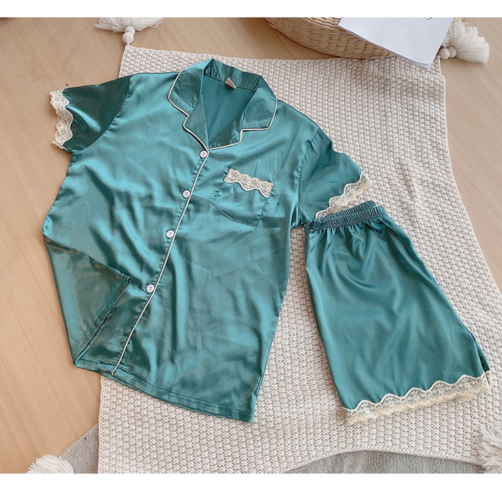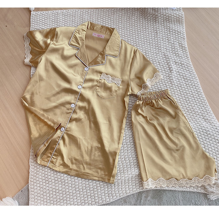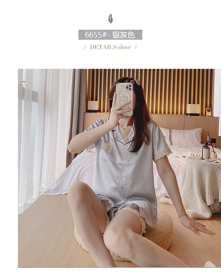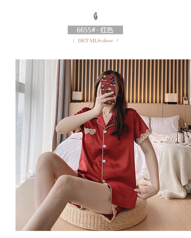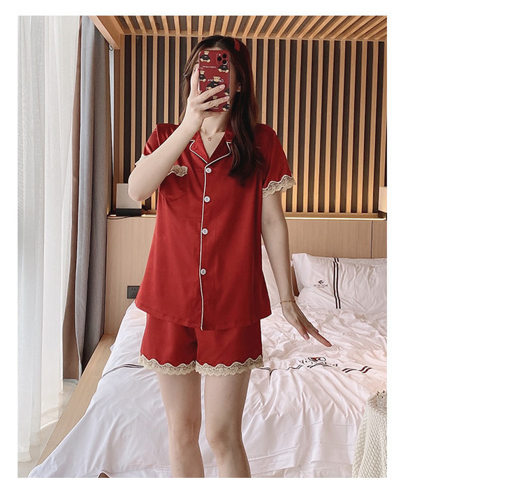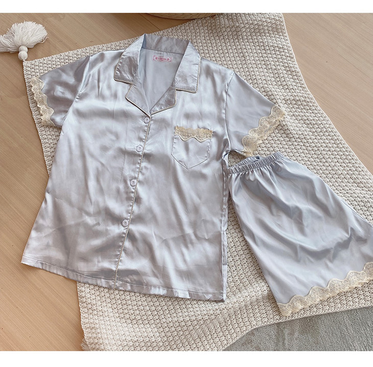 【服饰鞋包】夏季睡衣女冰丝薄款短袖套装开衫蕾丝花边家居服