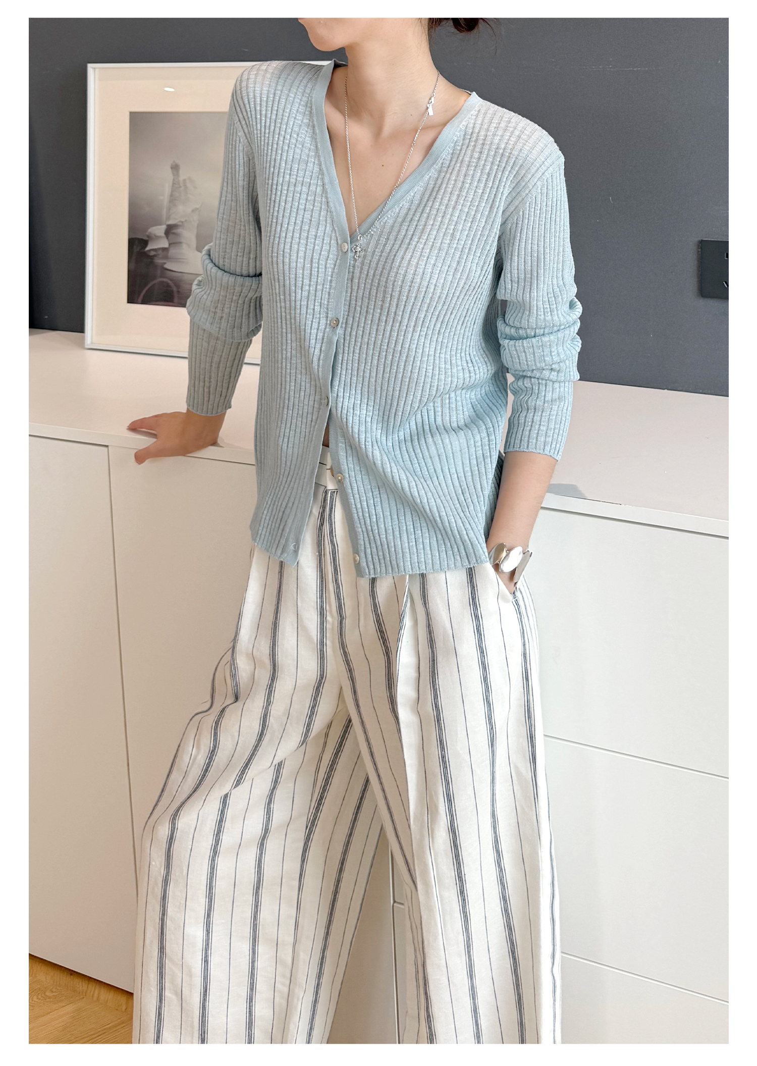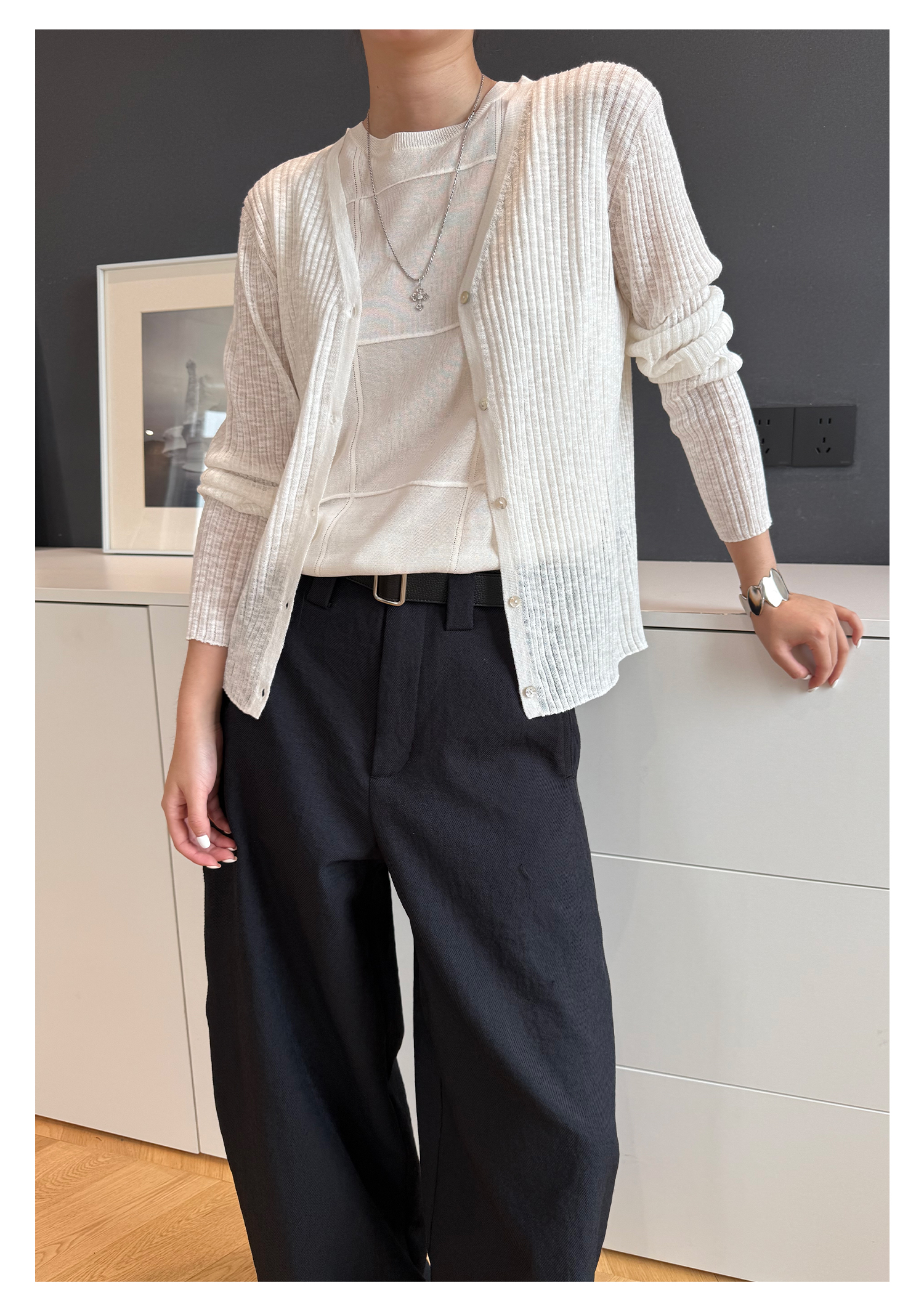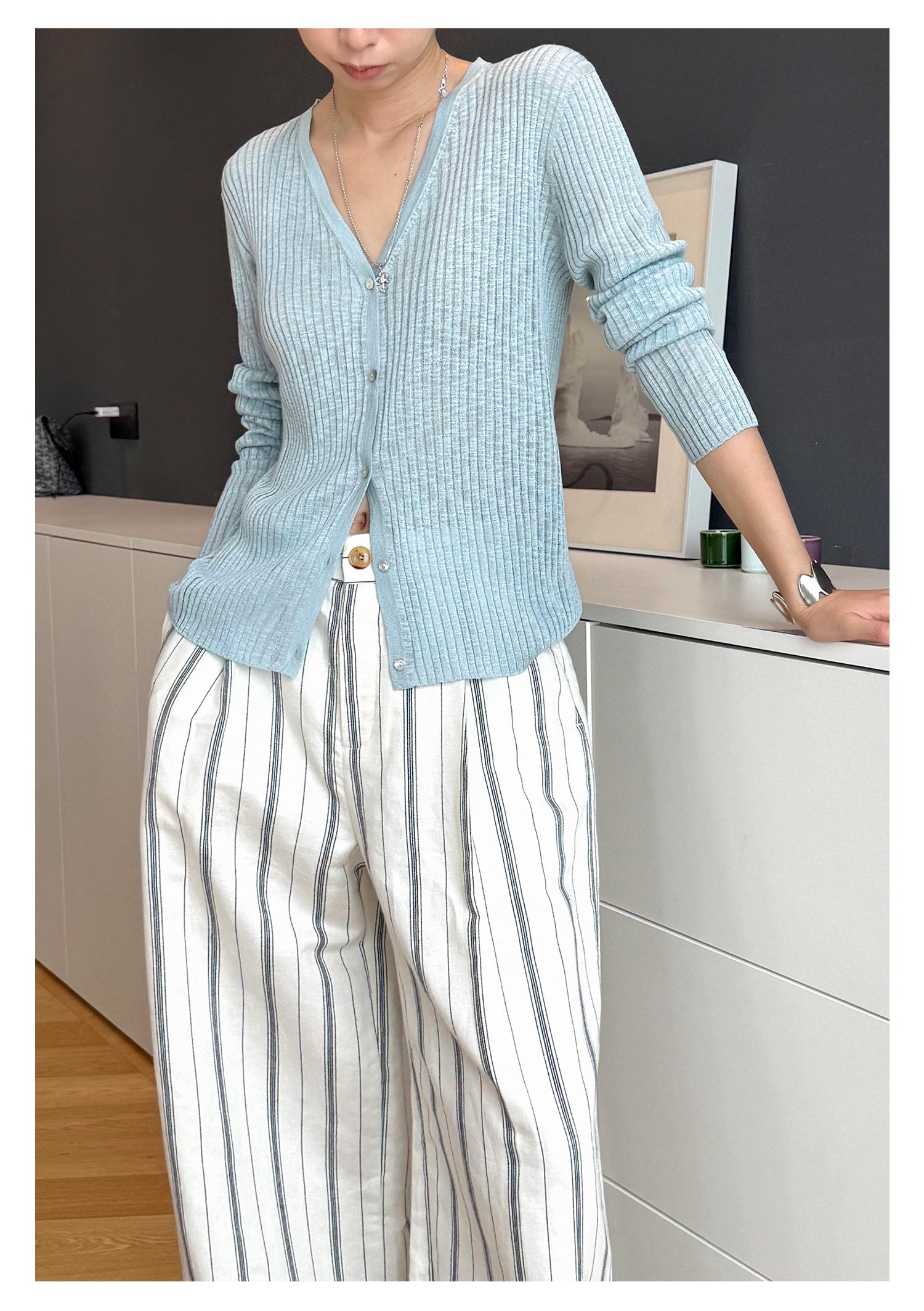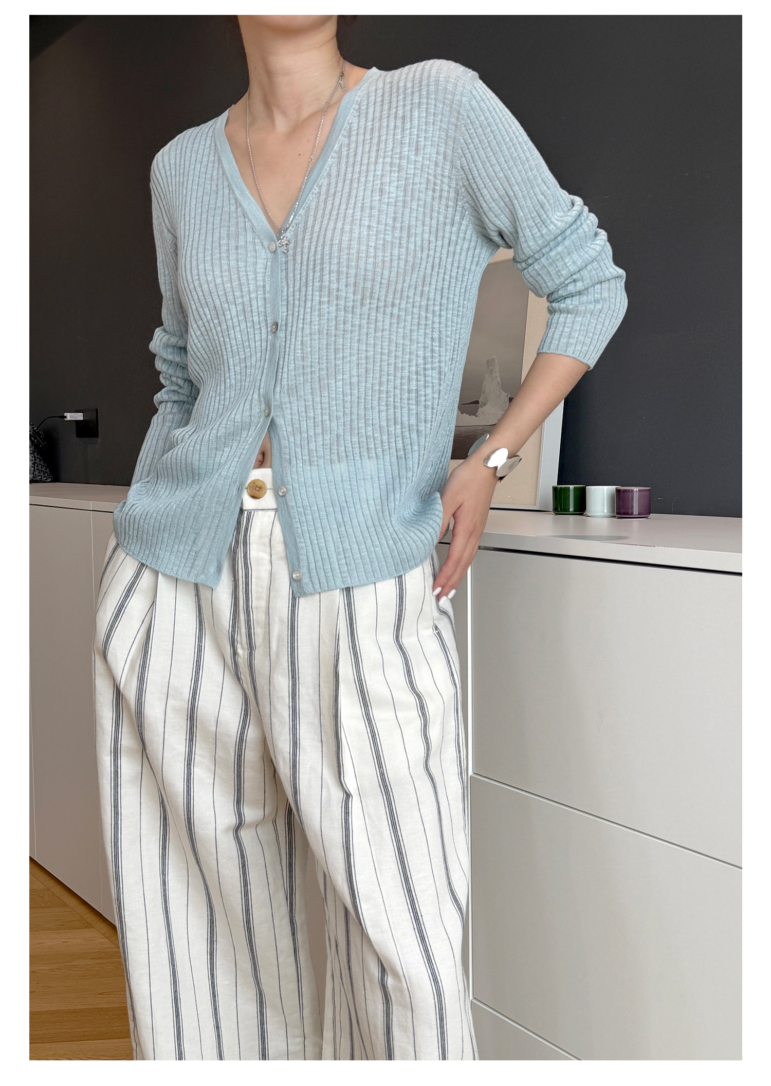 棉仓3631506001-肌理感V领薄款针织开衫女 25春夏凉感空调衫罩衫防晒衫上衣
