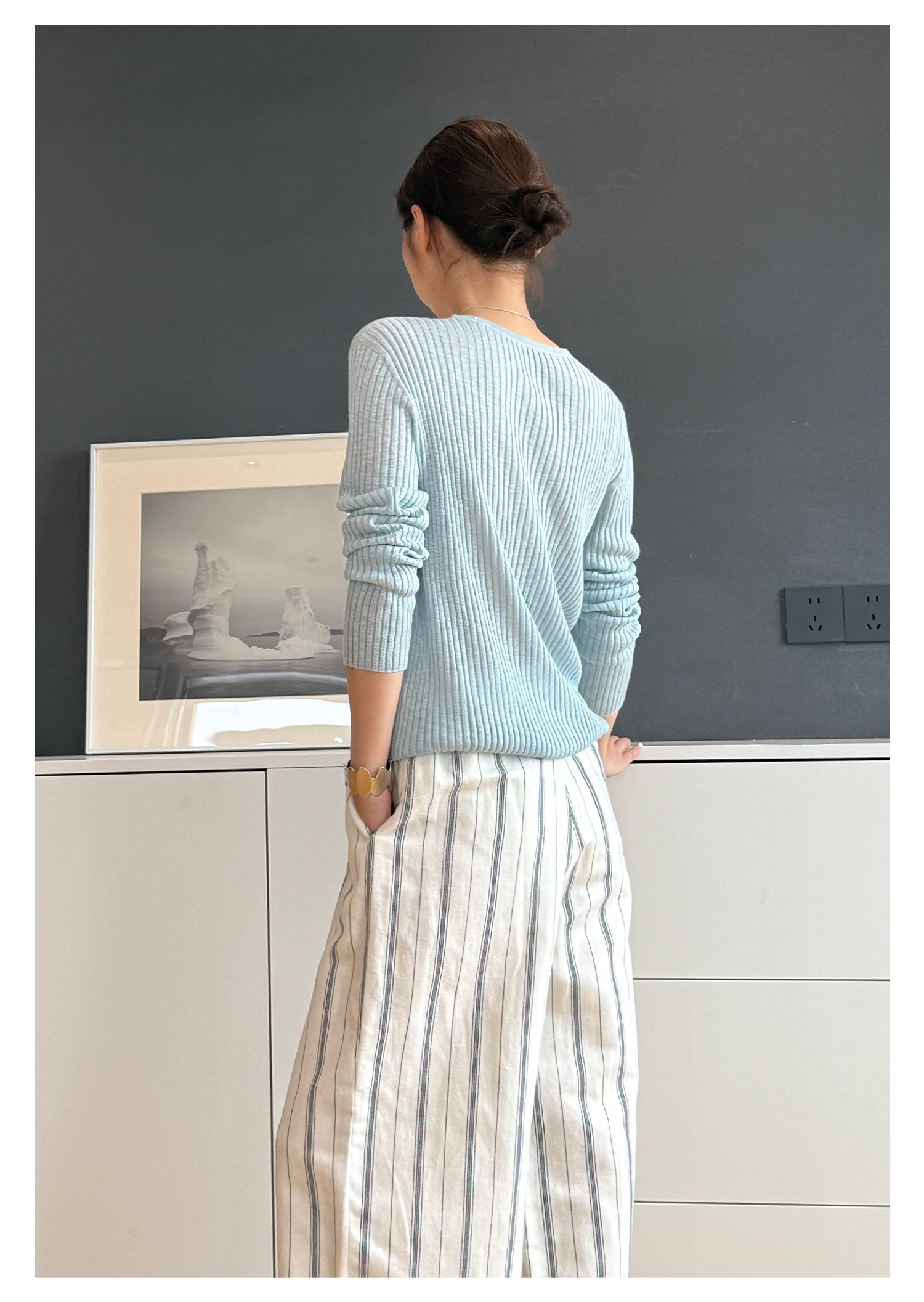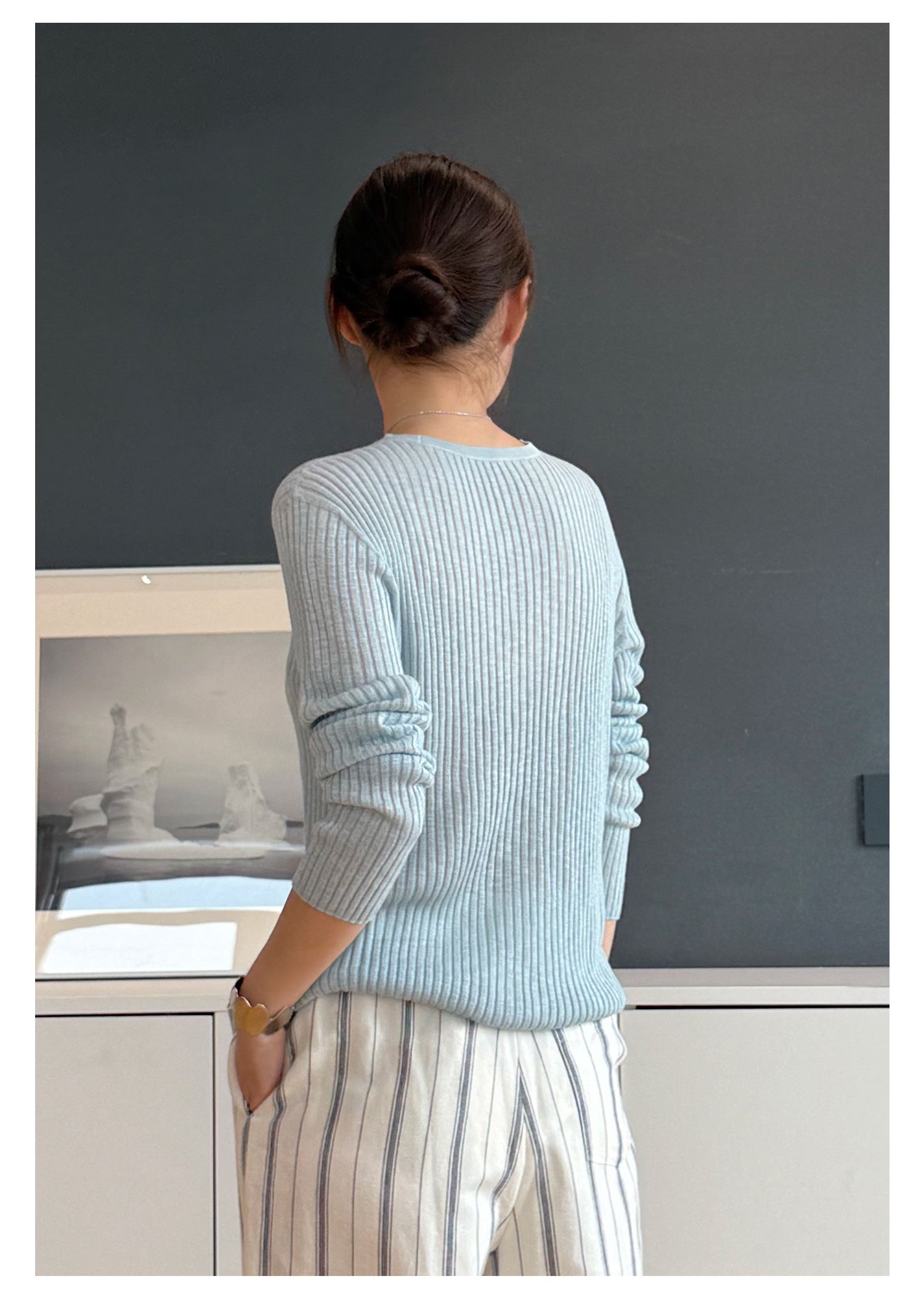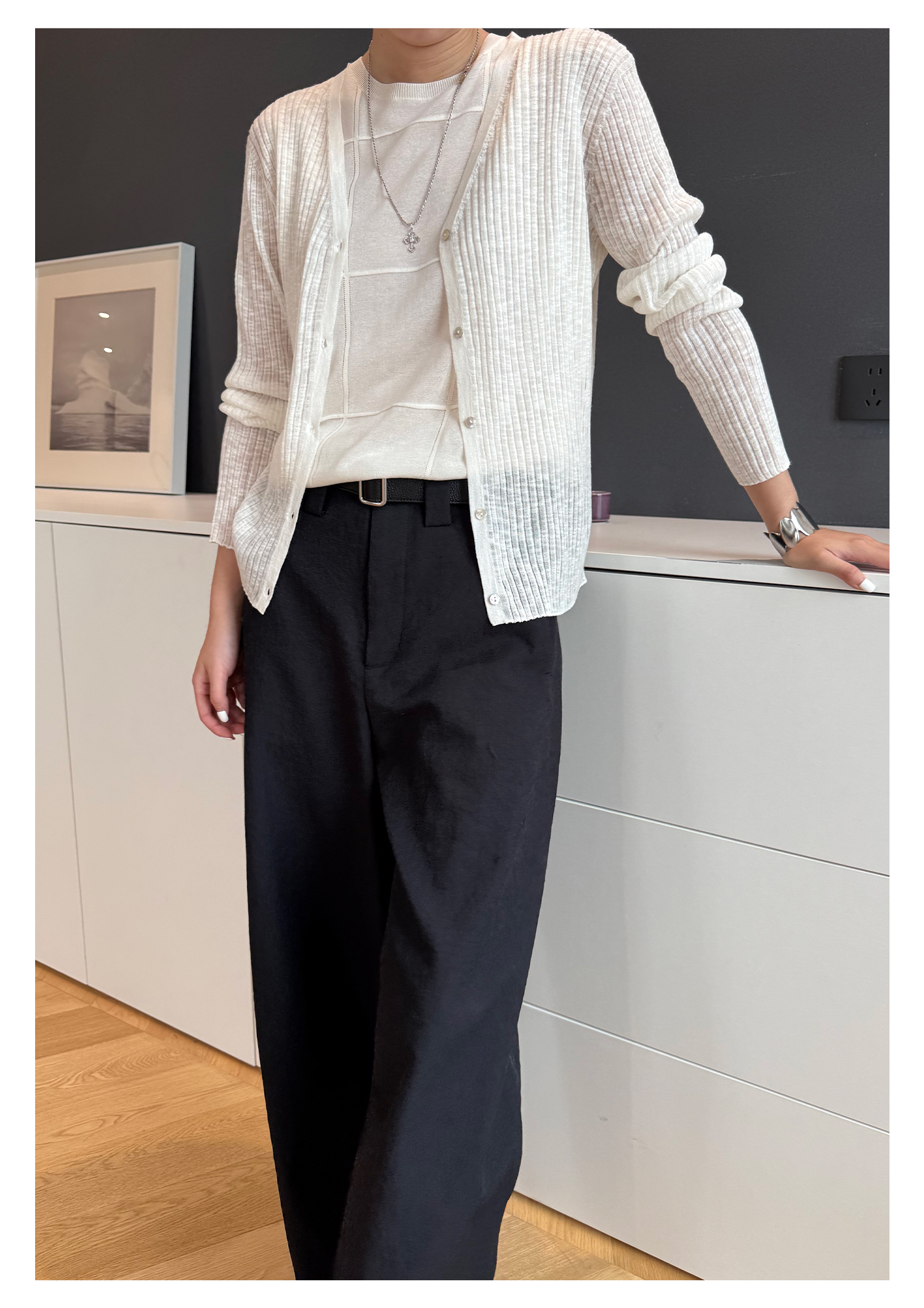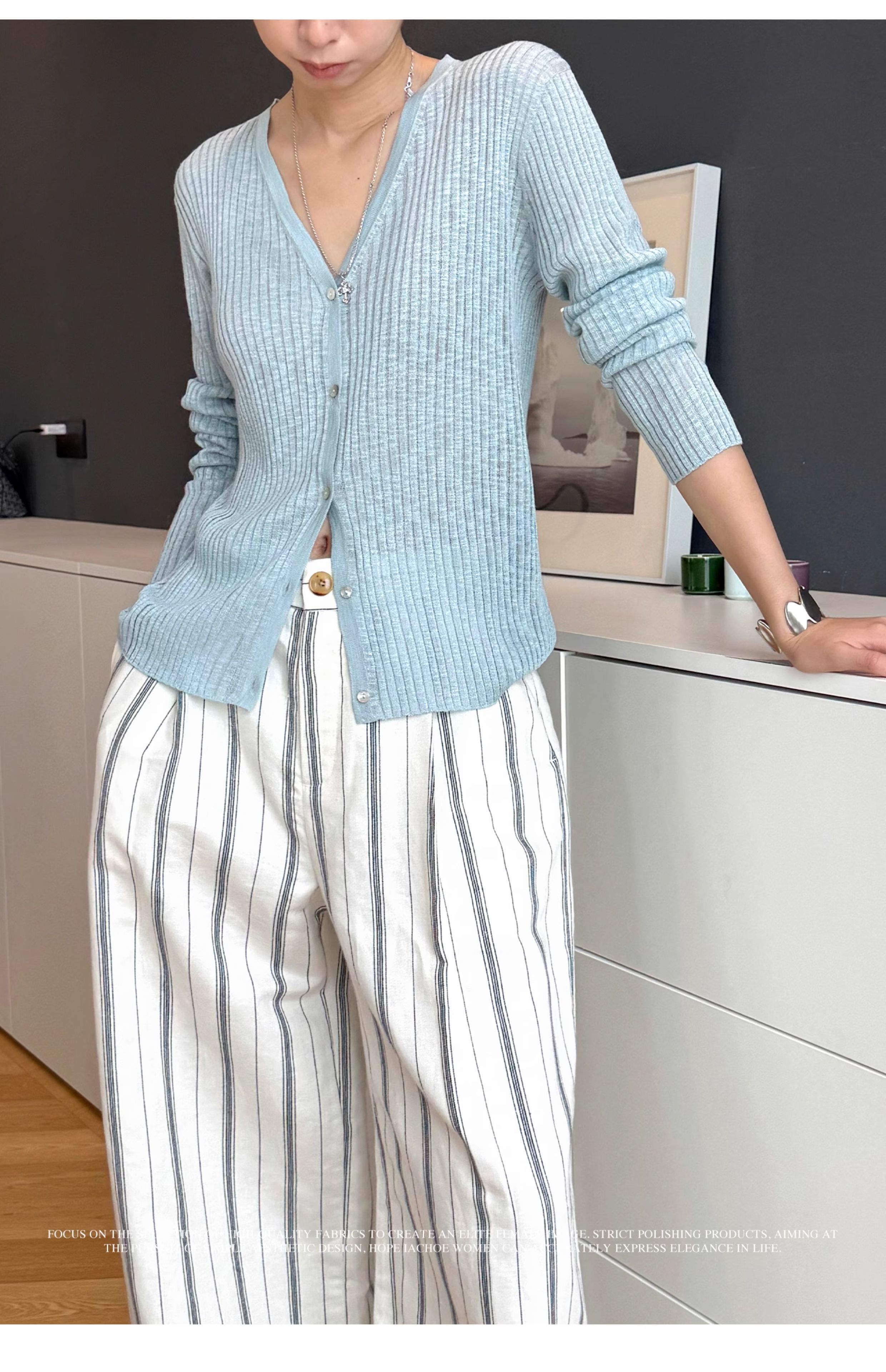 棉仓3631506001-肌理感V领薄款针织开衫女 25春夏凉感空调衫罩衫防晒衫上衣
