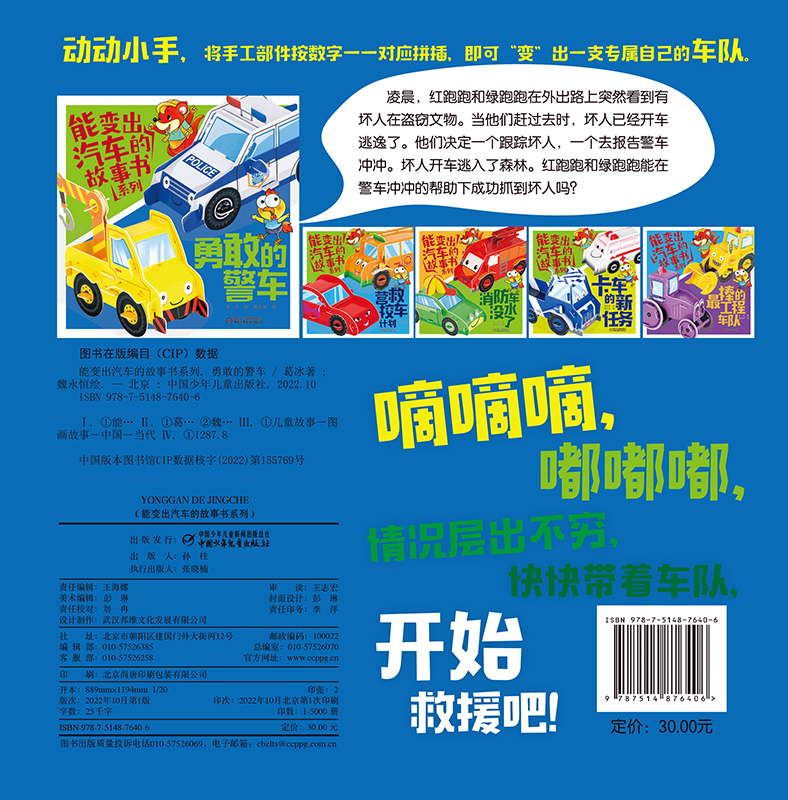 《能变出汽车的故事书系列·勇敢的警车》适读年龄3-6岁 嘀嘀嘀,嘟嘟嘟,情况层出不穷,带着车队出发救援吧!