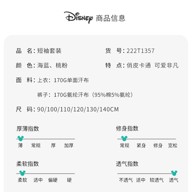 迪士尼夏季新品黛丝系列短袖套装可爱风两件套