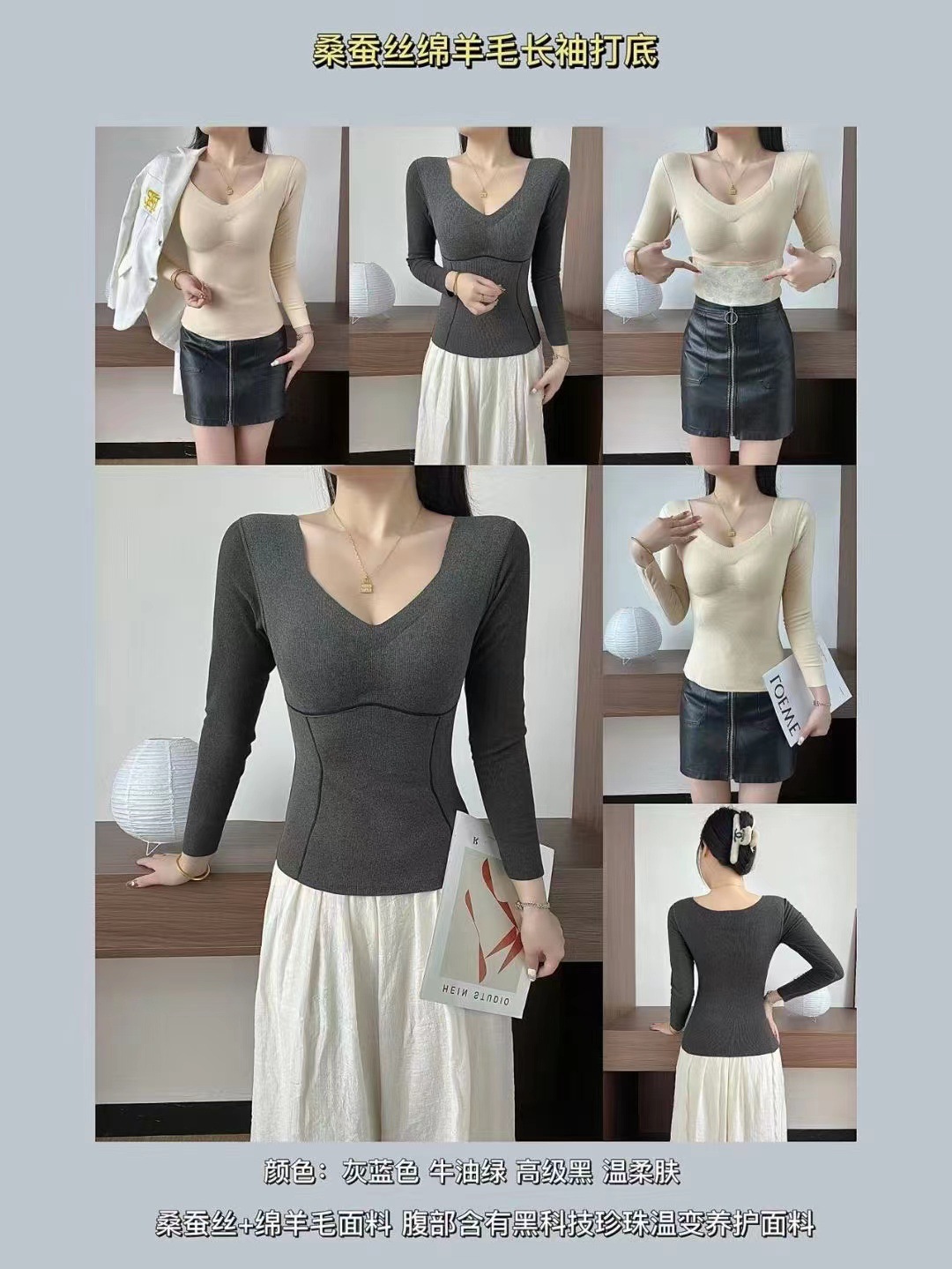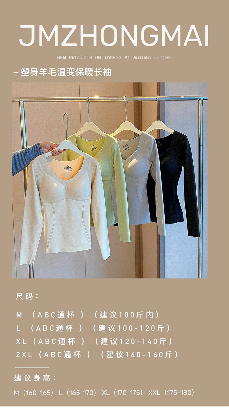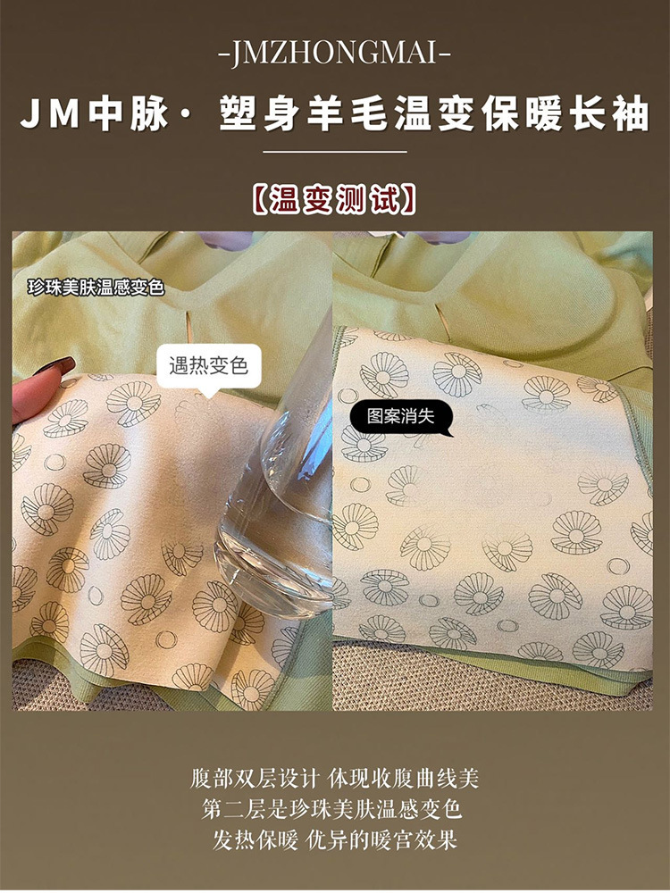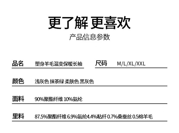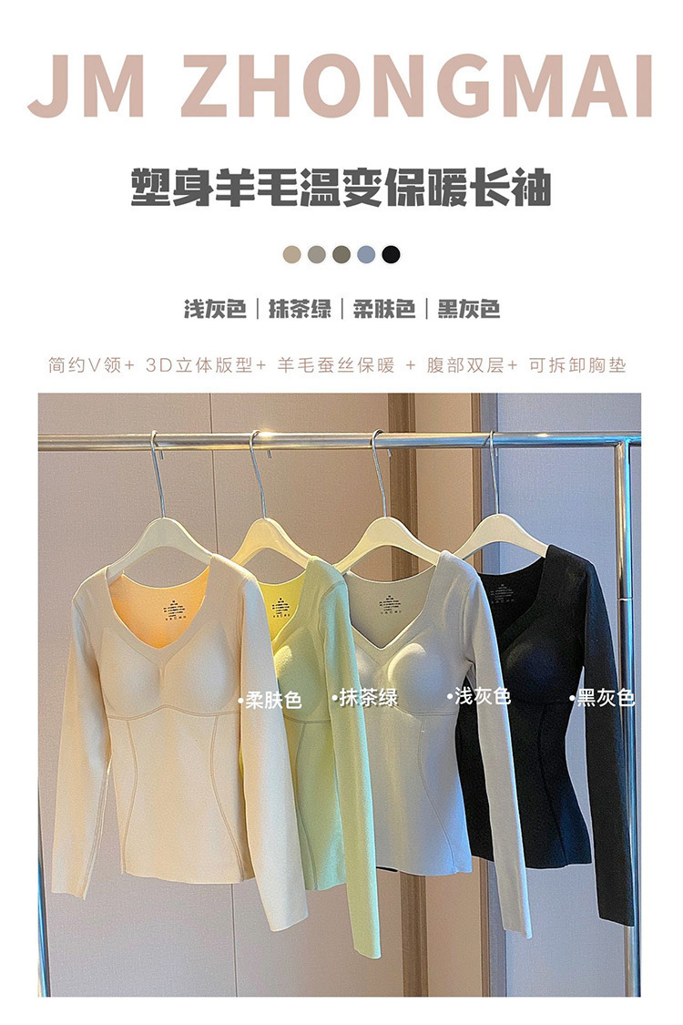 秋冬新款【黑科技发热塑身衣】羊毛温变保暖长袖 加厚冬季内搭打底衫