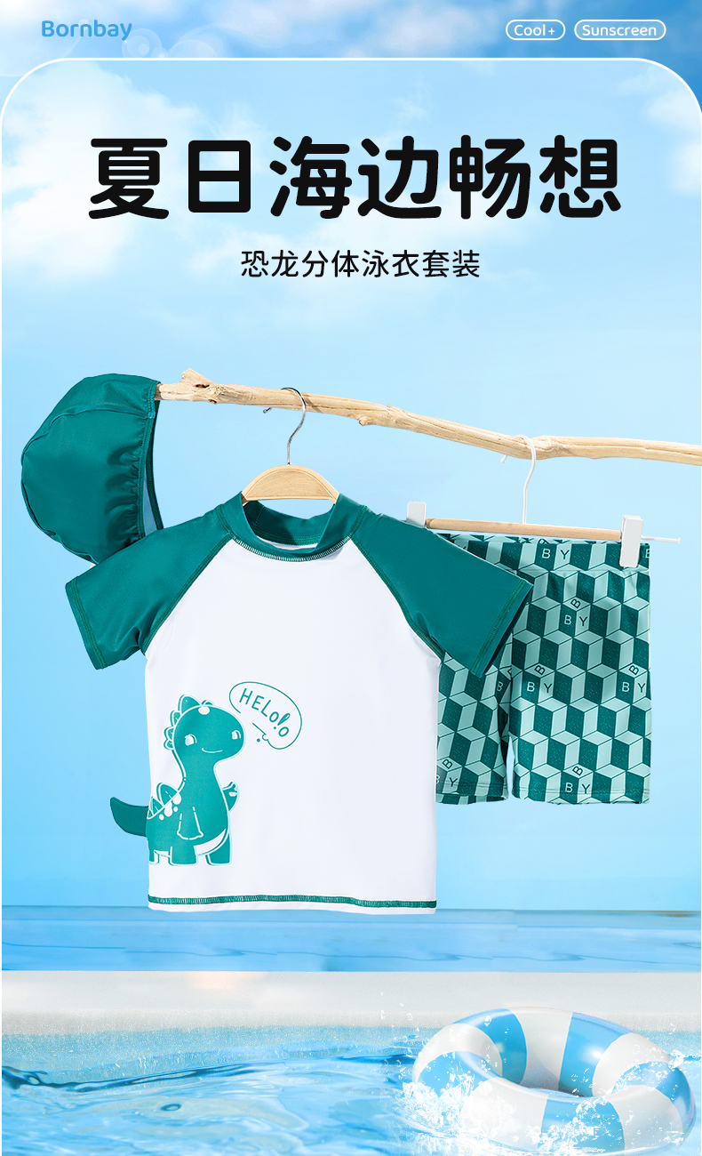 贝贝怡男童夏季新款泳衣套装ZB5DP044