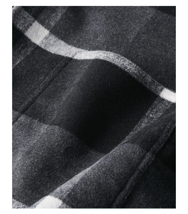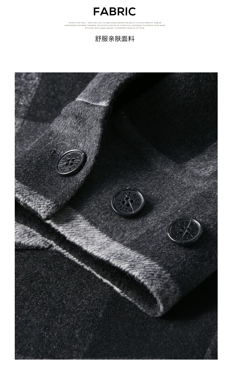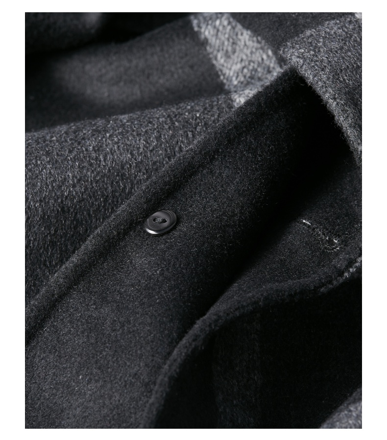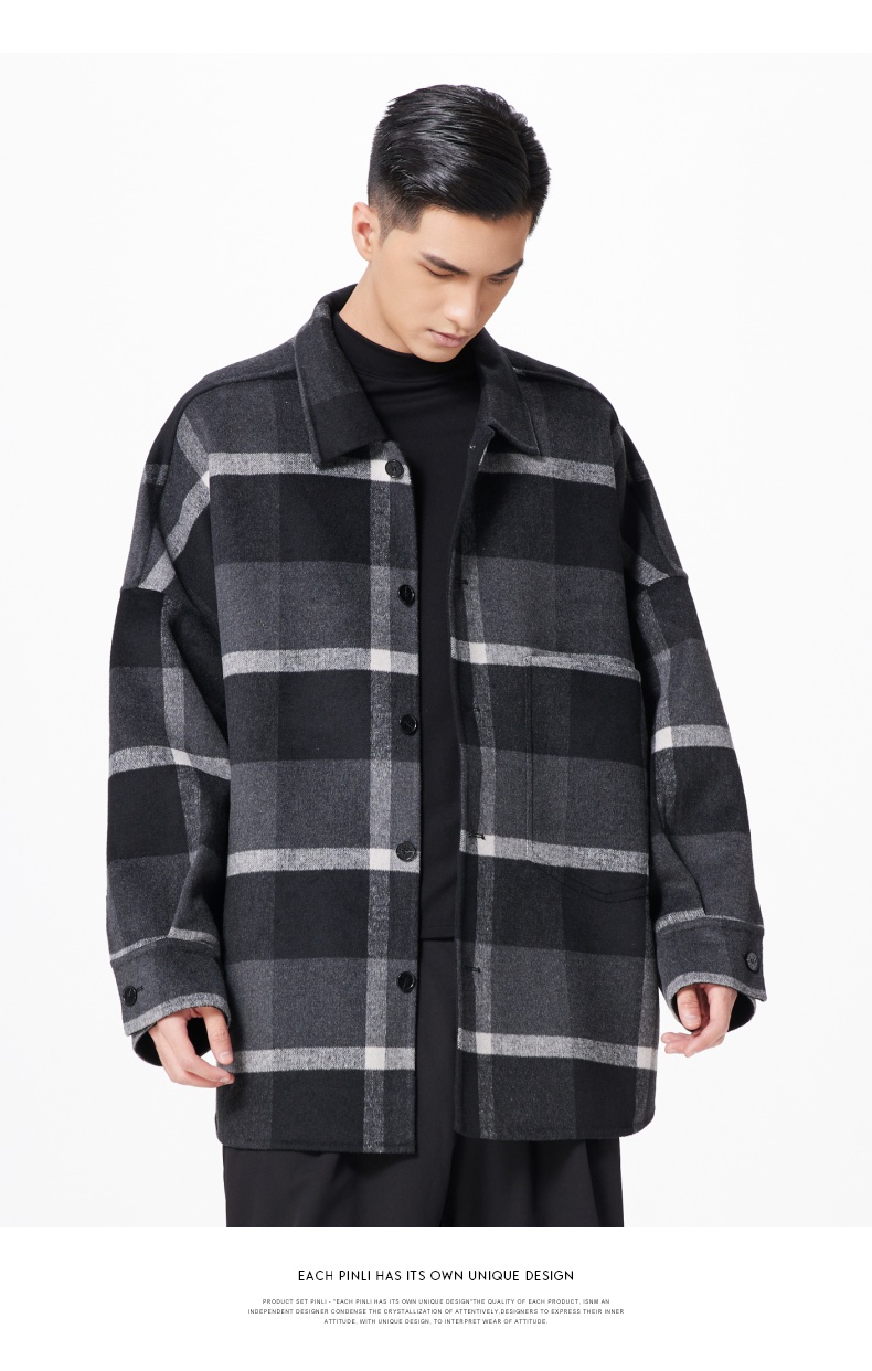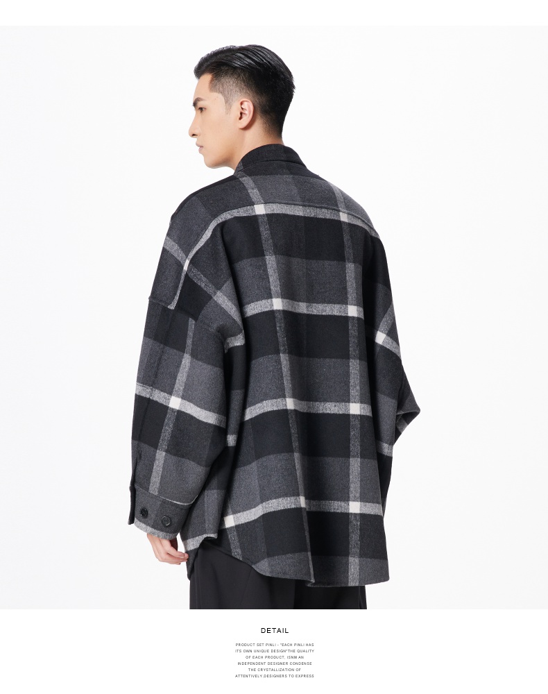 PINLI品立冬季新款宽松男装格子翻领绵羊毛双面呢大衣外套潮