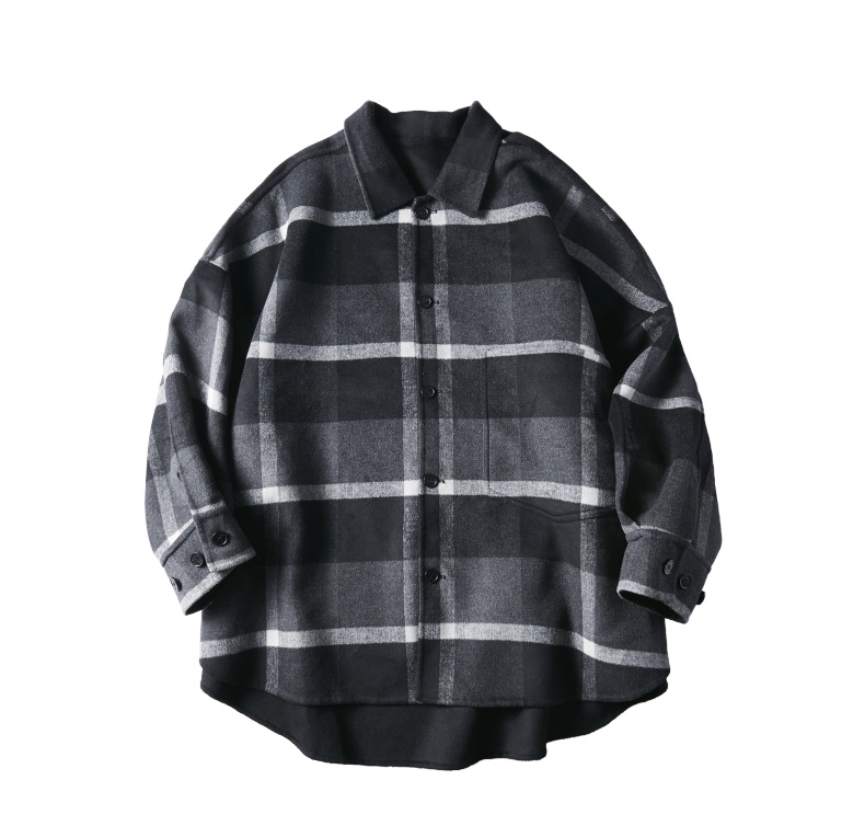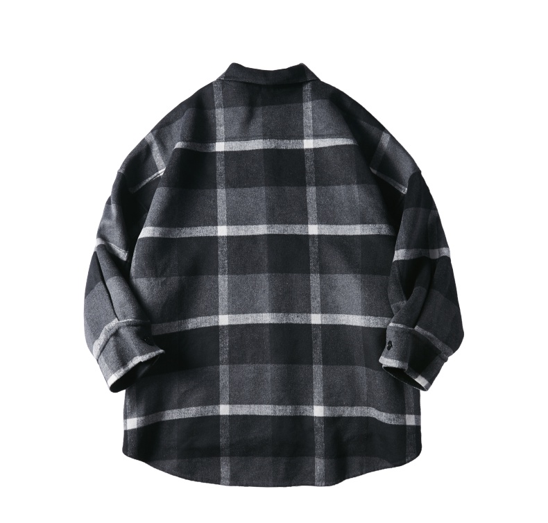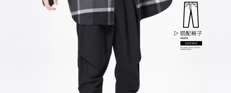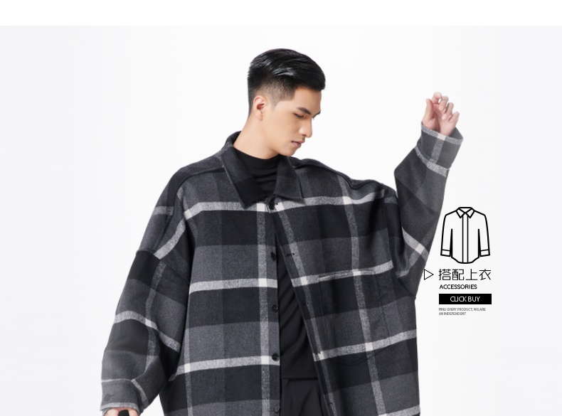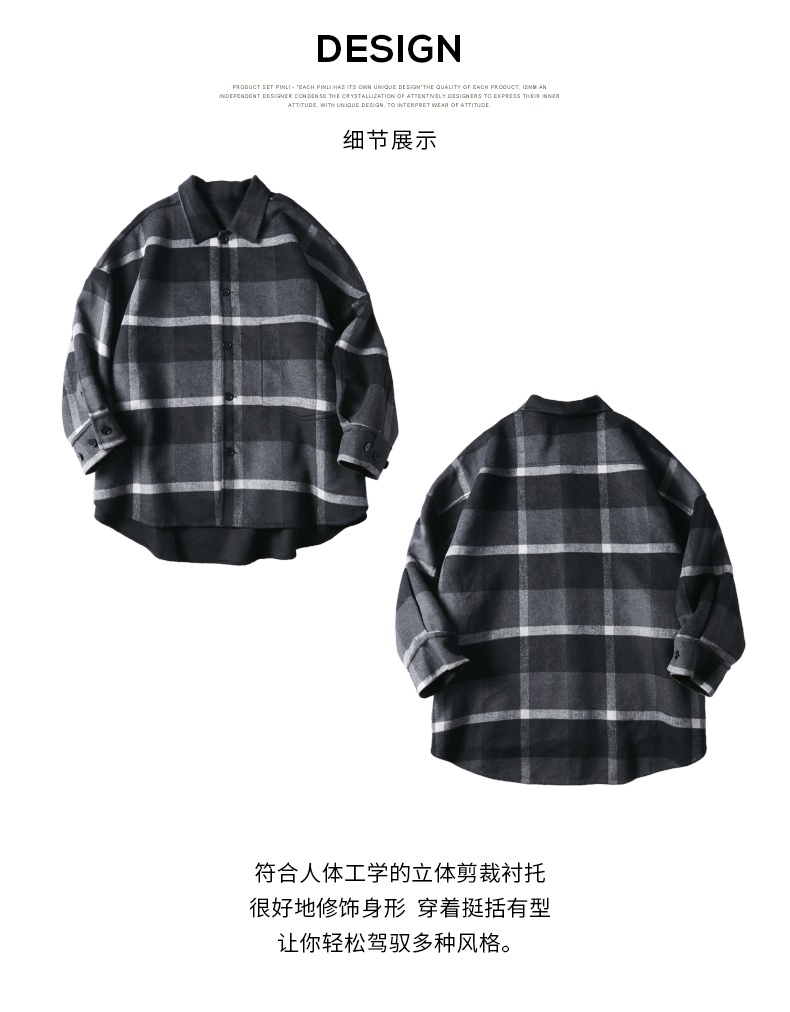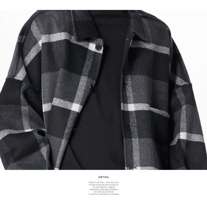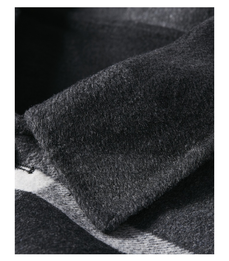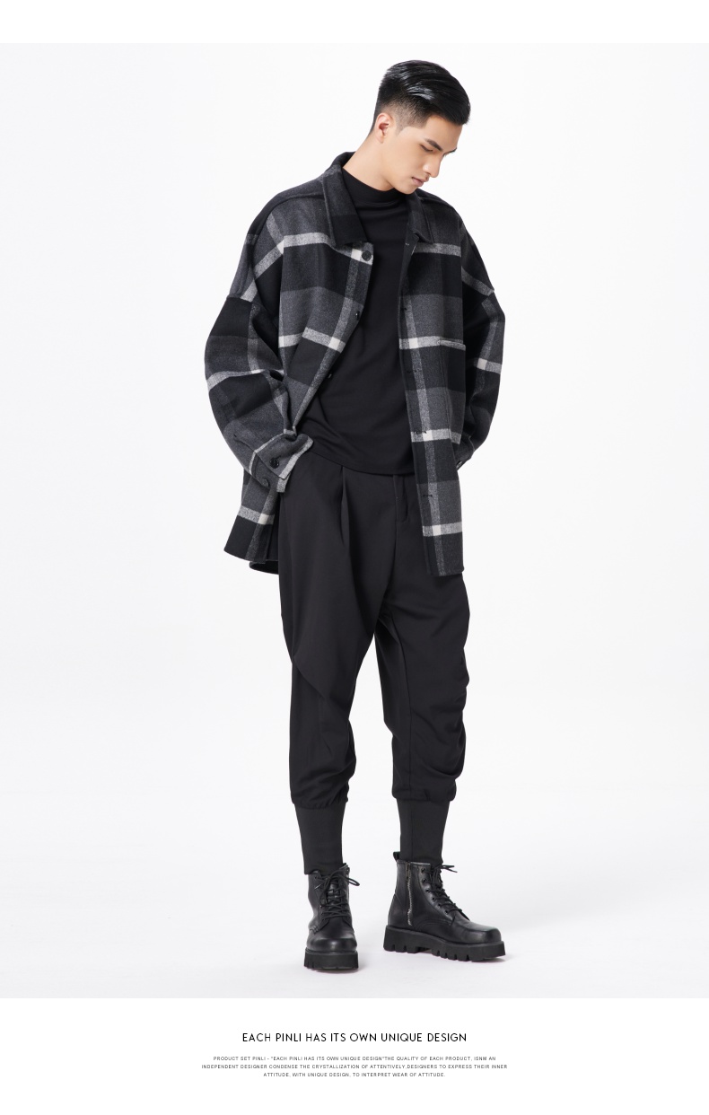 PINLI品立冬季新款宽松男装格子翻领绵羊毛双面呢大衣外套潮