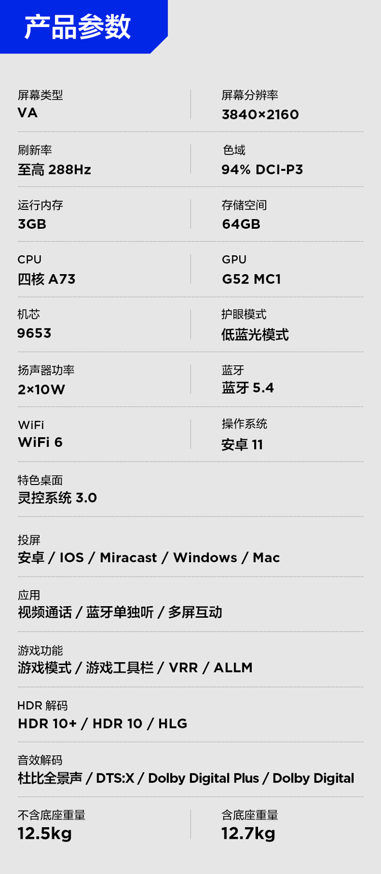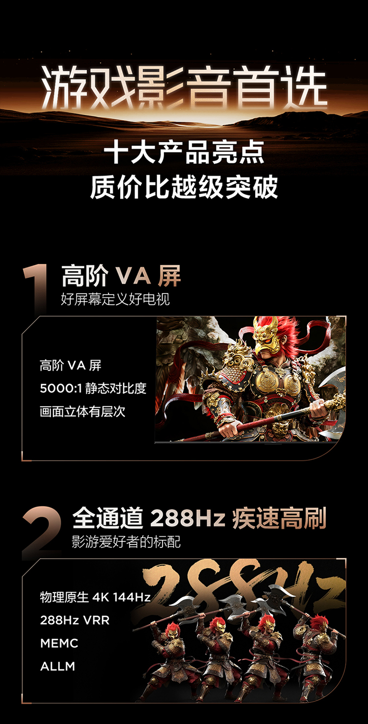 【FFALCON雷鸟】鹏7 26款 65英寸 高阶VA全通道288Hz高刷 满血HDMI2.1安桥音响95%P3色域灵控系统 65S78A