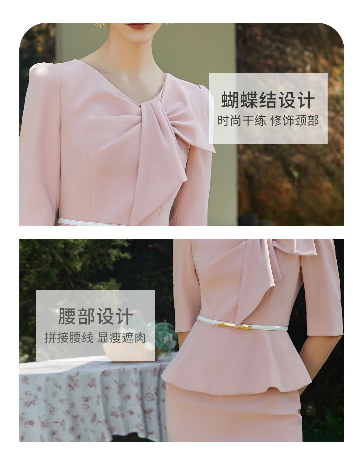 AD空姐制服职业套装高端粉色连衣裙女2024新款名媛范假两件西装裙