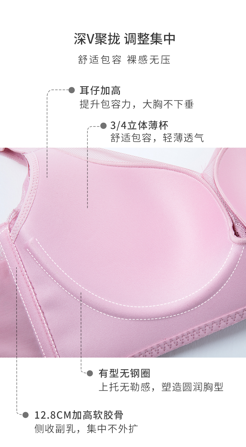 雅黛丽内衣女小胸薄款透气文胸无钢圈收副乳防下垂调整型美背胸罩