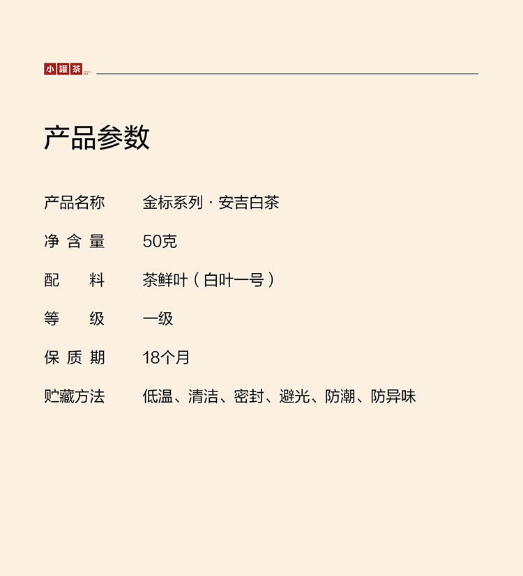 【2026春茶】小罐茶·金标系列·安吉白茶 50g
