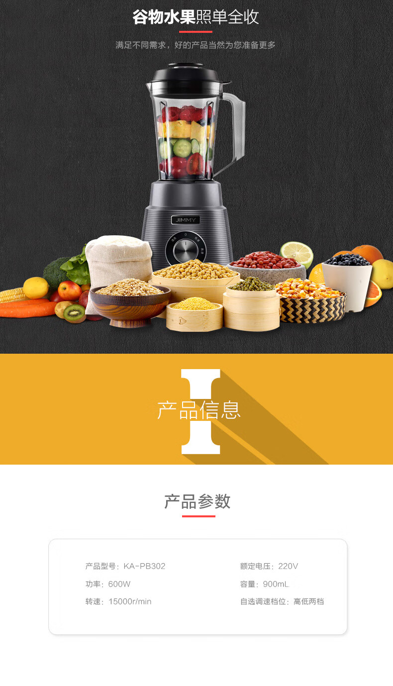 吉米(JIMMY)家用多功能自动料理机 灰色 PB302