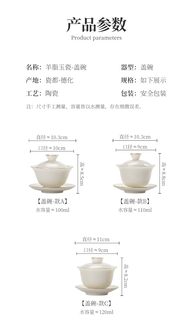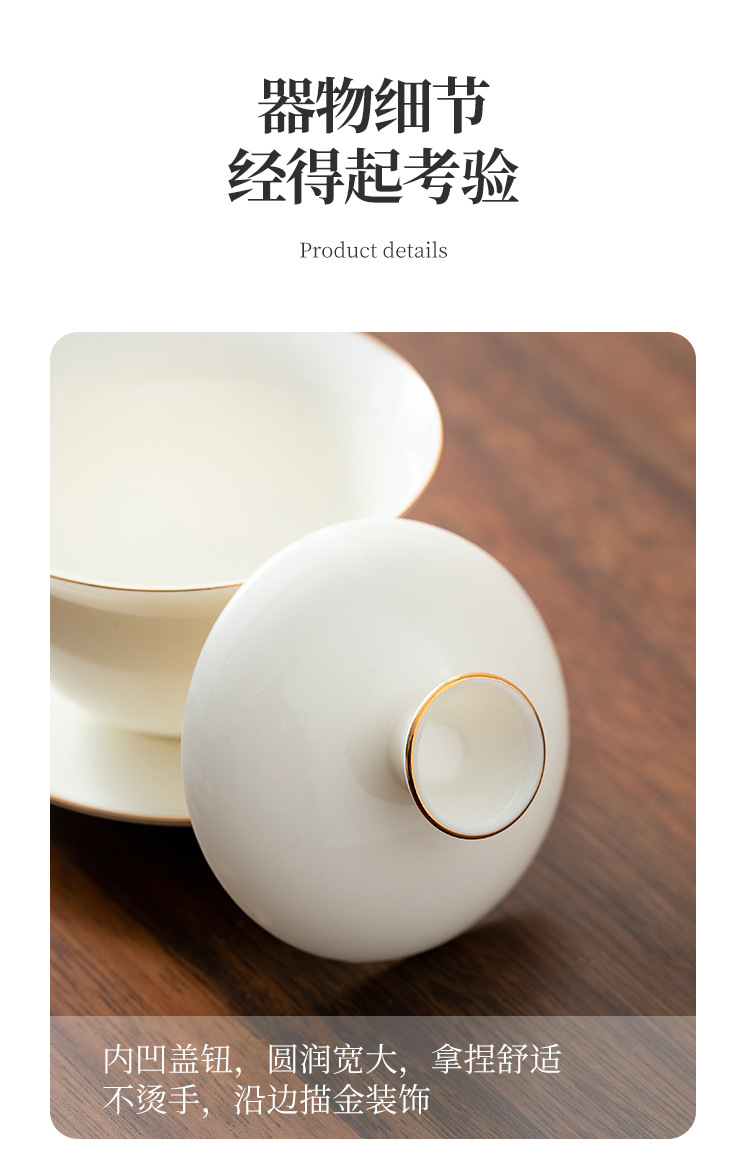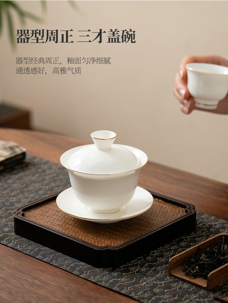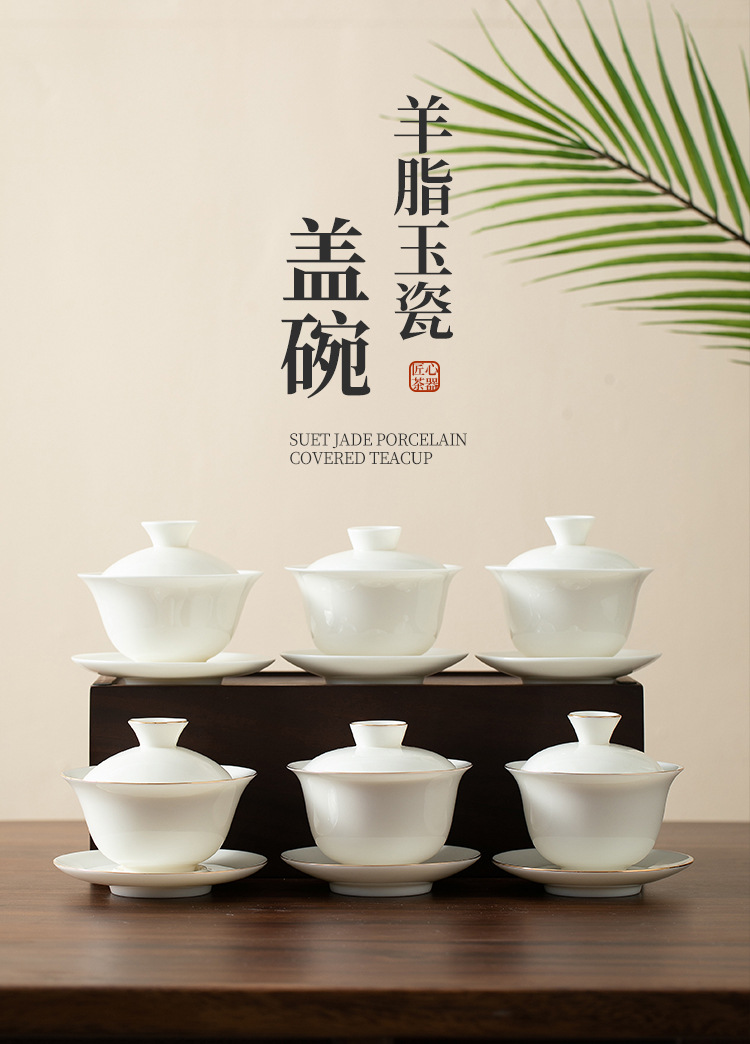 瓷聚阁丨羊脂玉瓷盖碗 三才盖碗 德化玉瓷 约120ml 多款可选 茶具茶生活美器
