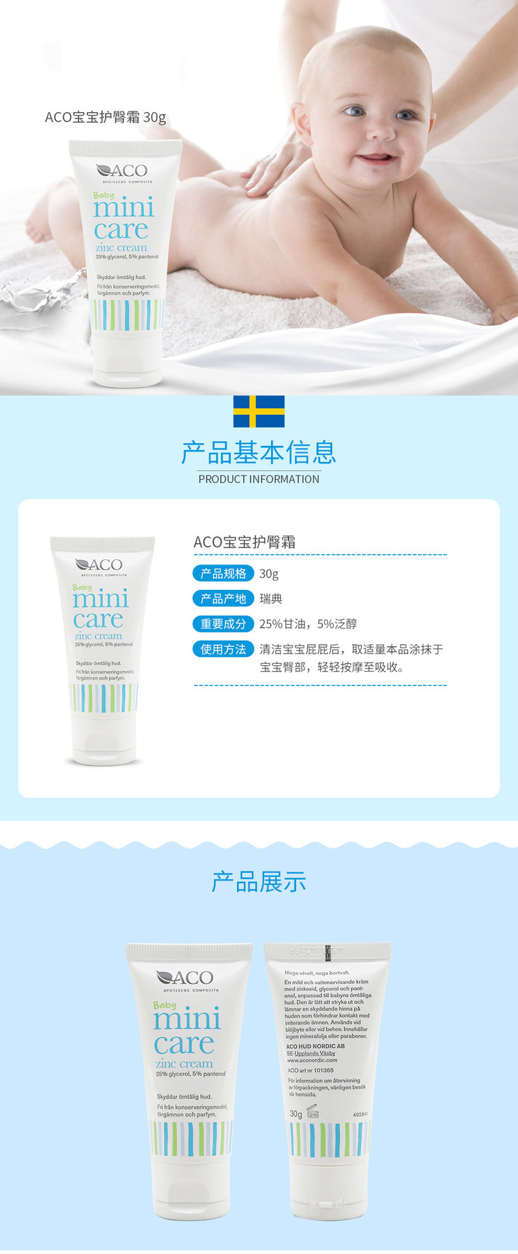 [瑞典]ACO迷你护理婴儿锌霜30克 ACO Minicare Baby Zink Cream 30g