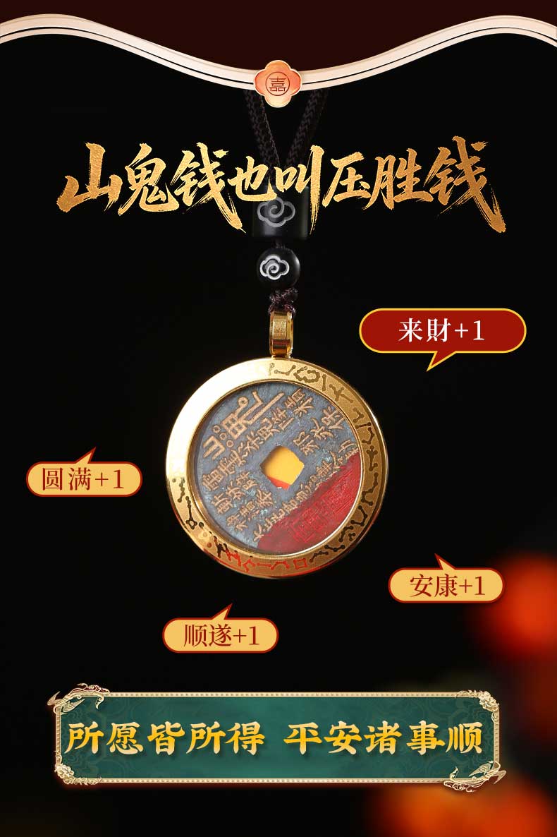 灵机麦玲玲山鬼花钱·平安吊坠项链2026年挂饰挂件相伴健康铜