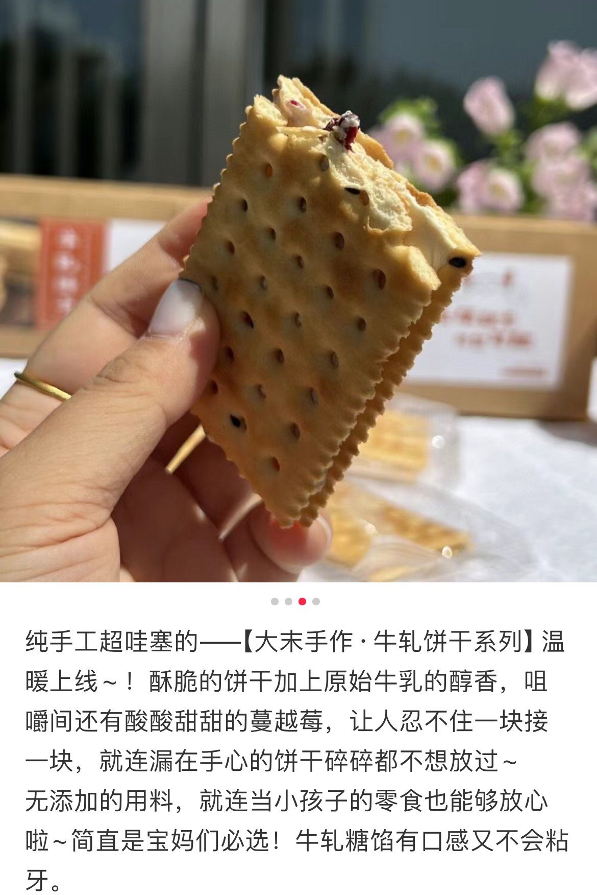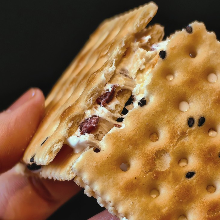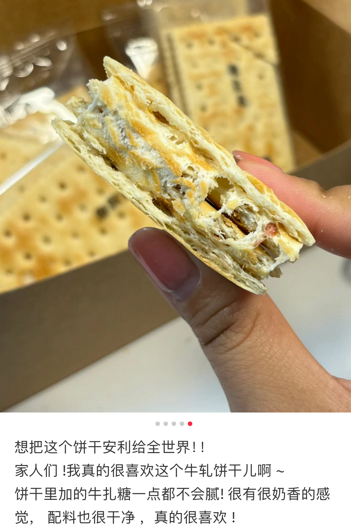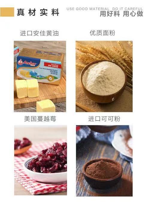 牛轧饼有原味、可可、蔓越梅三种口味,都有独立包装。轻轻一咬,饼干酥脆,夹心香甜不腻!如果想要有拉丝感,也可以将饼干放到微波炉加热几秒,喜欢弹牙口感,就放冰箱冷藏,平时还可以泡泡牛奶,做做饼干塔,也是别有一番风味,全看自己喜好!做早餐,下午茶都很棒!我个人是非常推荐蔓越莓味,是好吃到停不下来的程度!