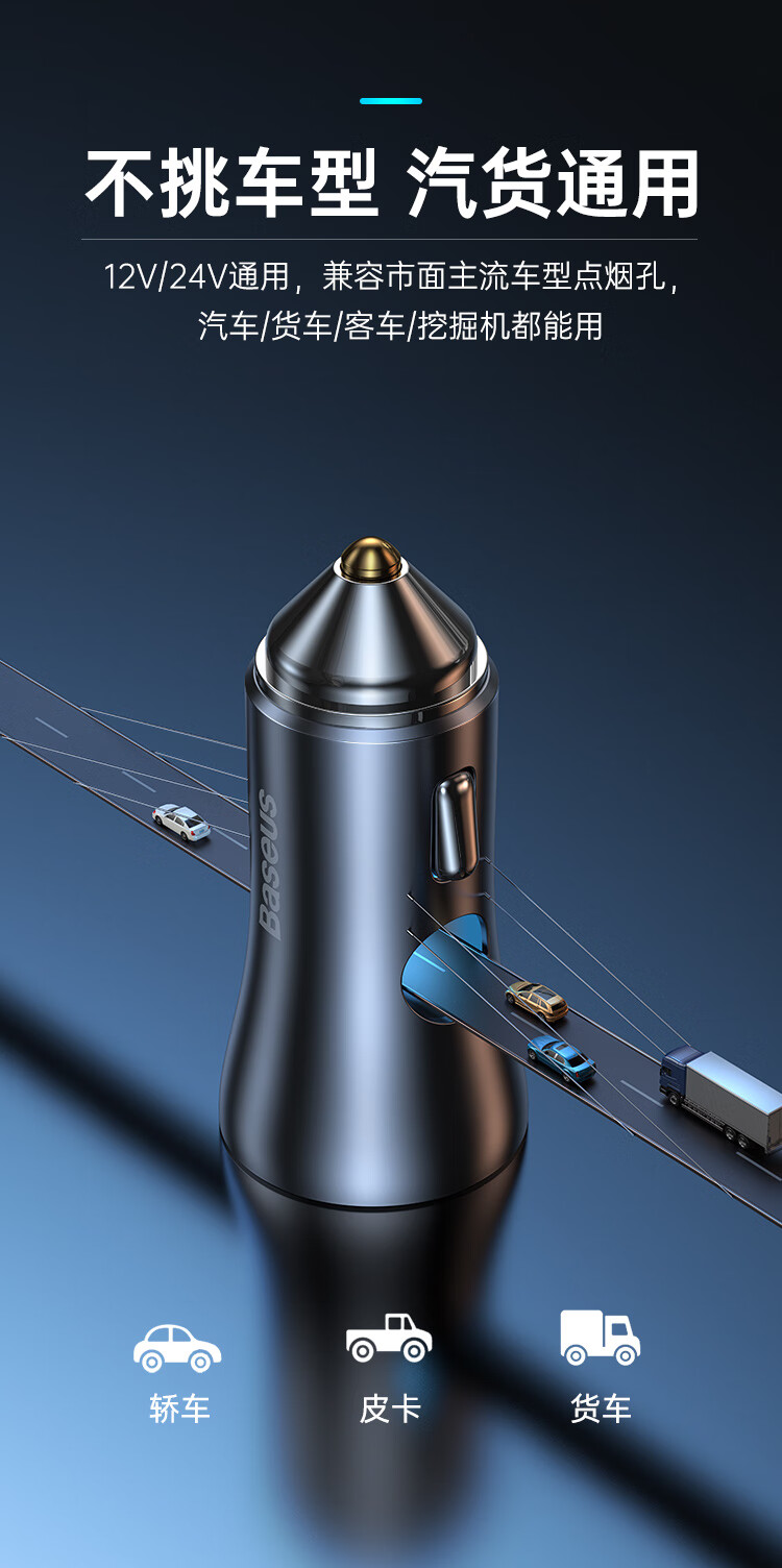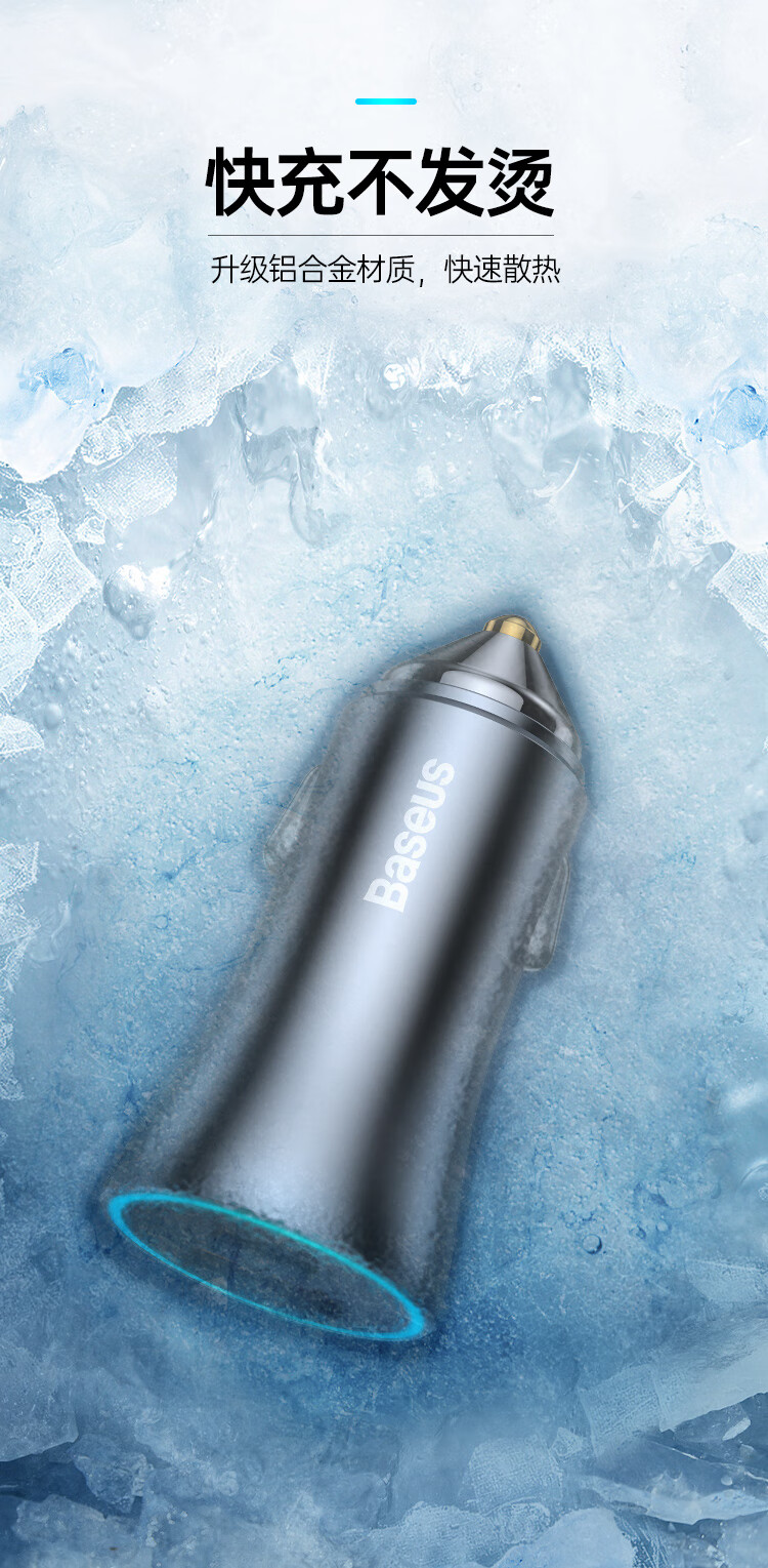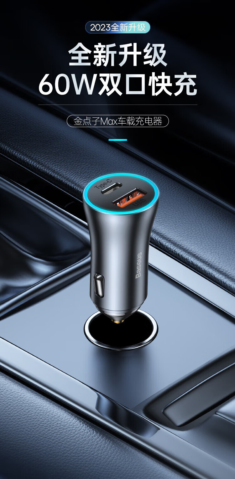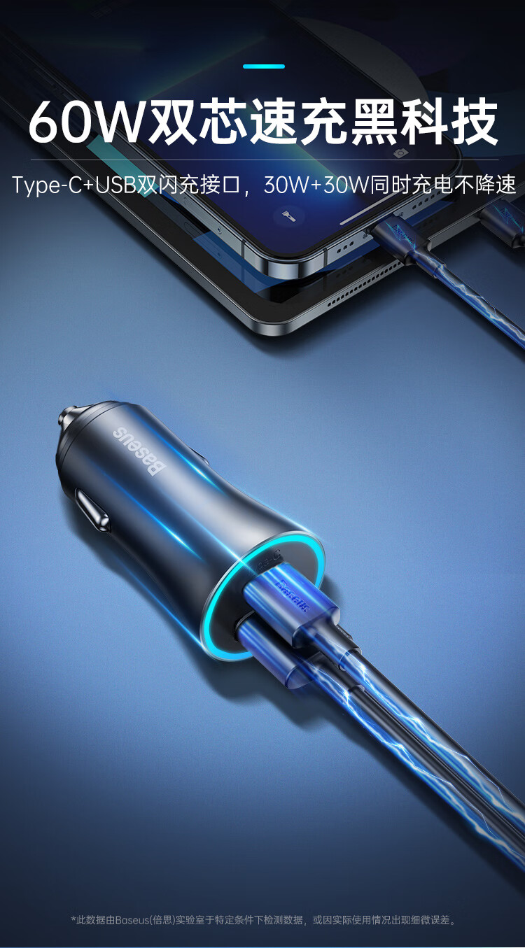 倍思 车载充电器60W点烟器一拖二车充超级快充