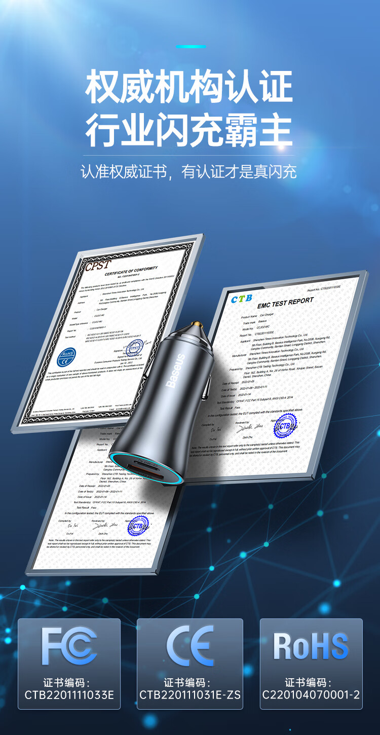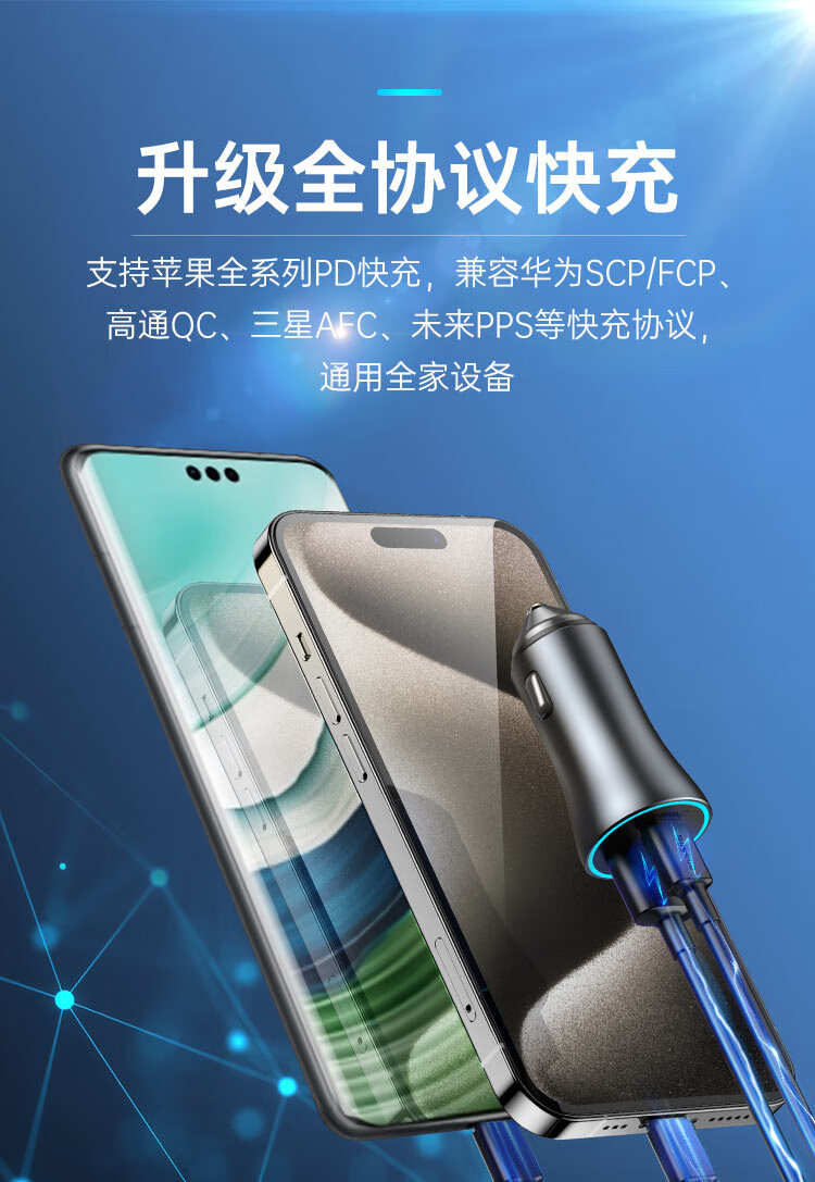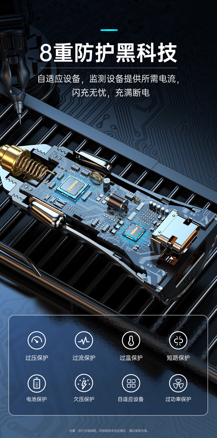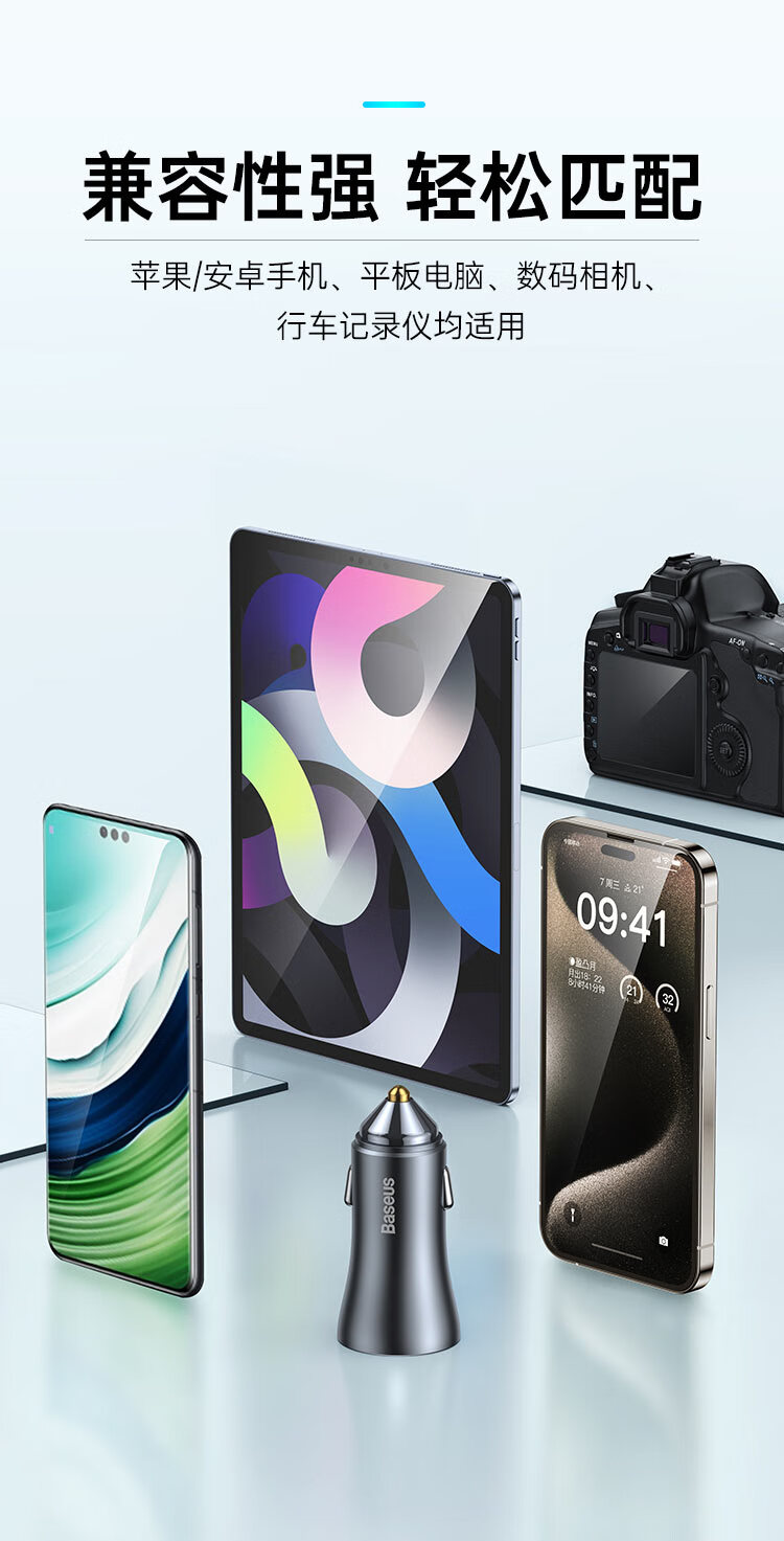 倍思 车载充电器60W点烟器一拖二车充超级快充
