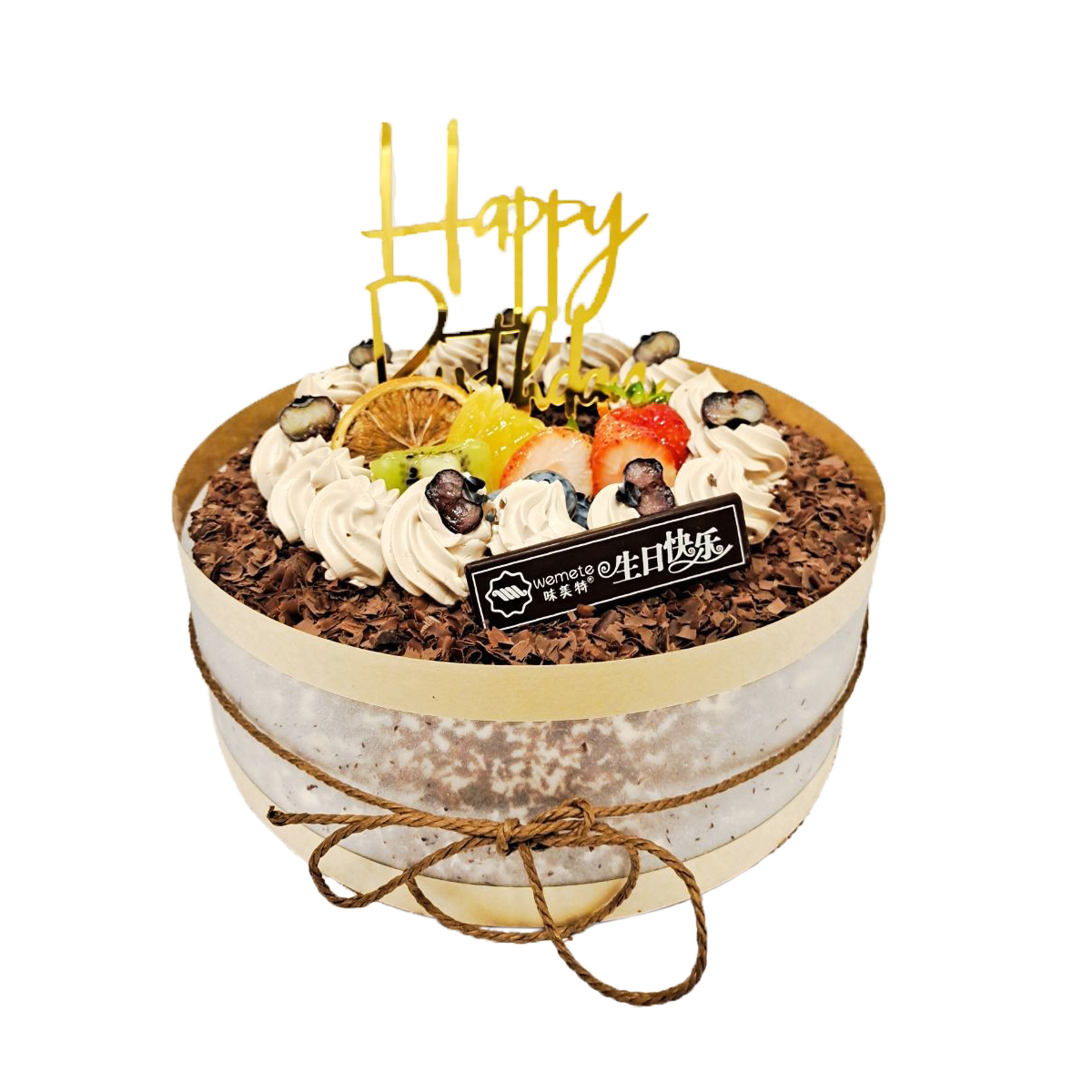 味美特“浓情可可”奶油蛋糕-主要成分巧克力、奶油、水果-周边用黑巧克力搭配、上面铺一层水果
