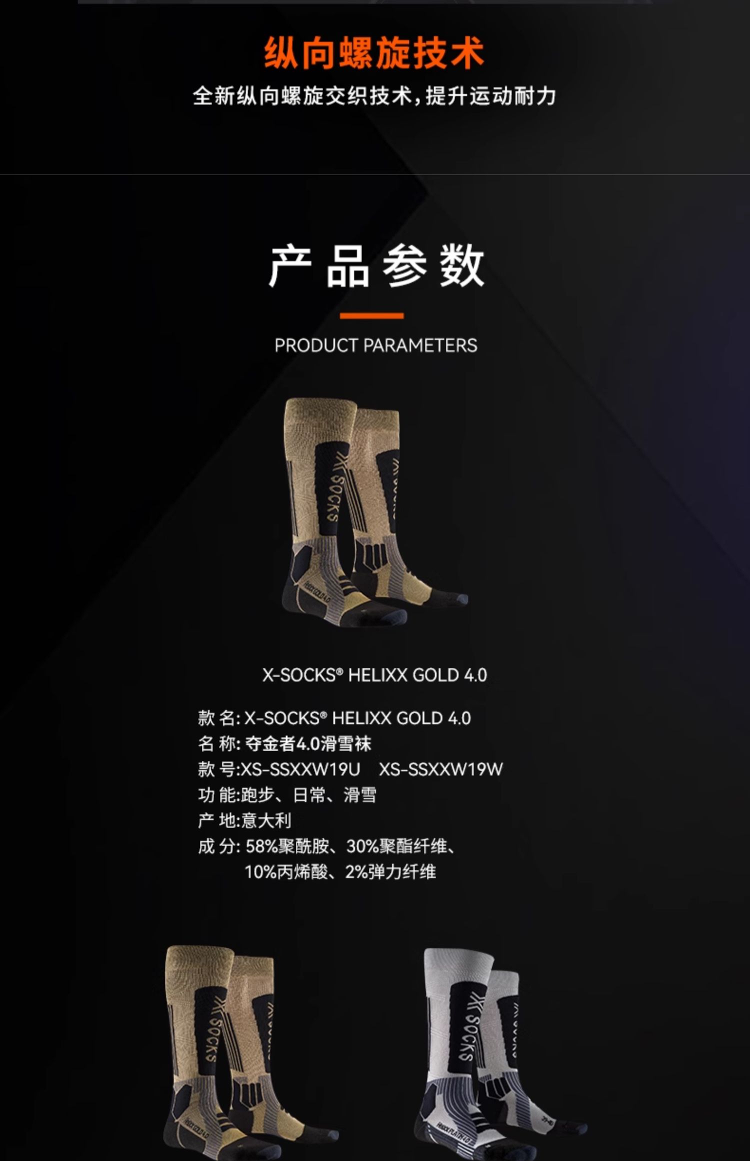 X-SOCKS 夺金者4.0滑雪袜 高抗寒热反射运动滑雪袜男女款