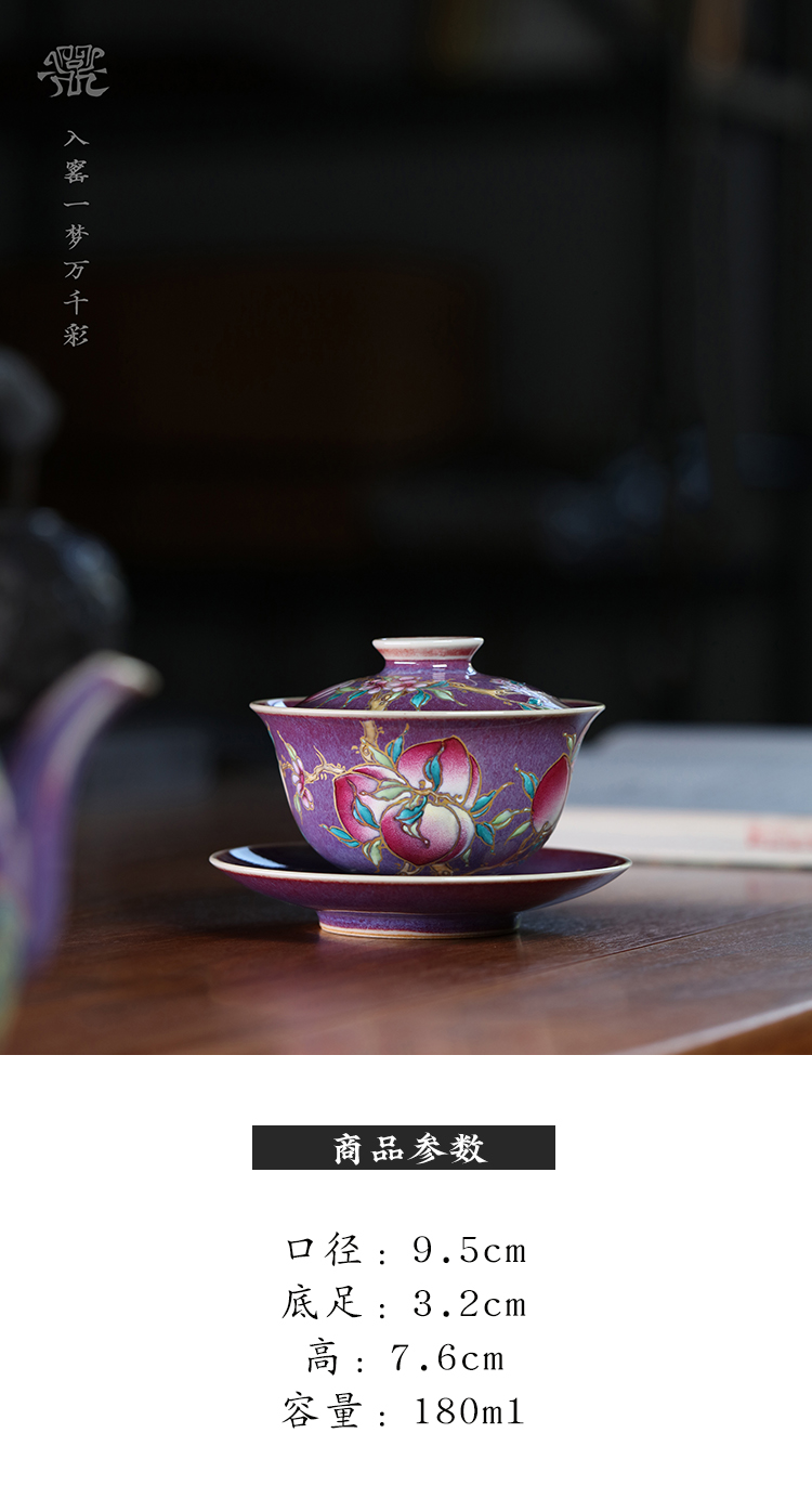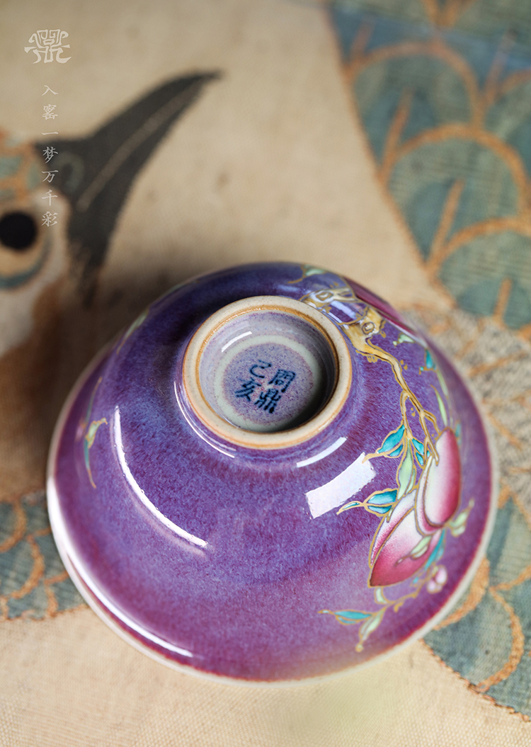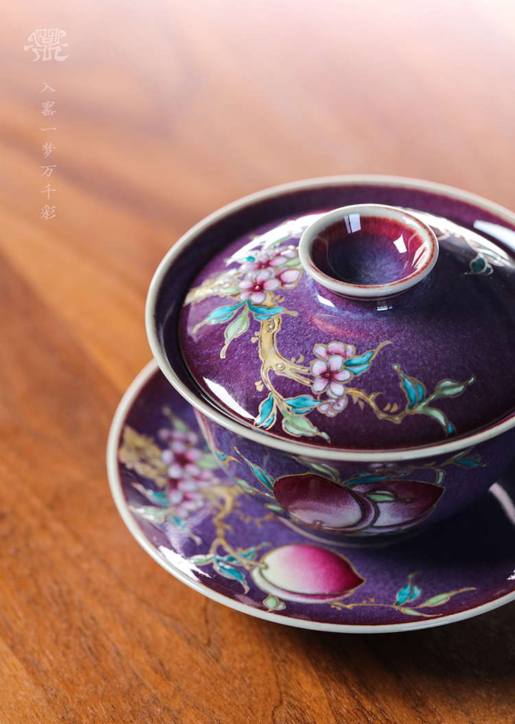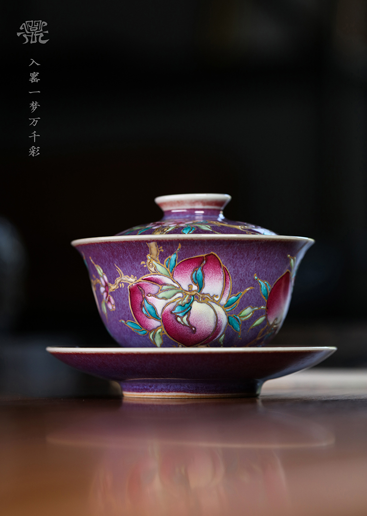问鼎钧瓷鸞萧盖碗(描金九桃)