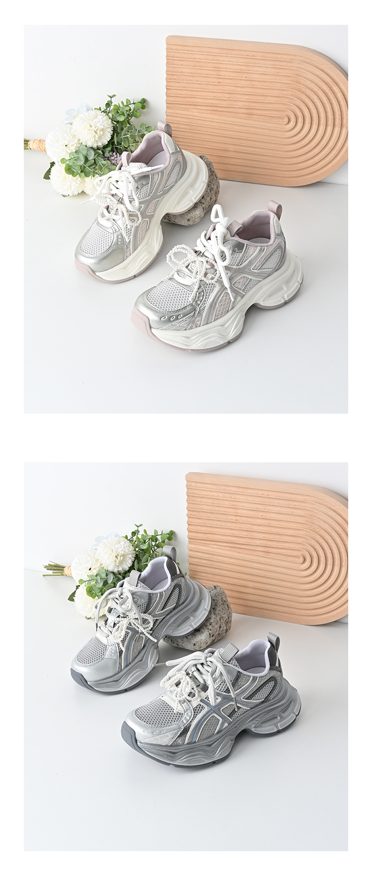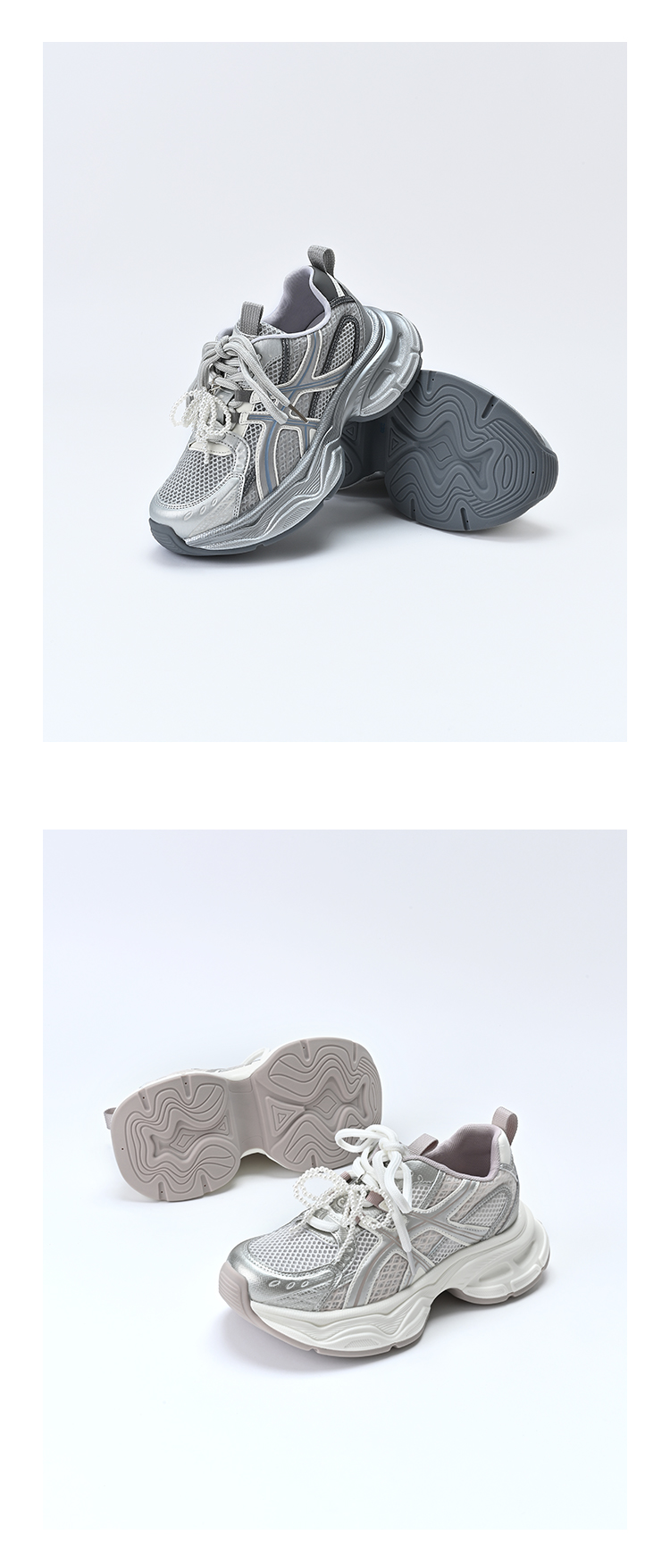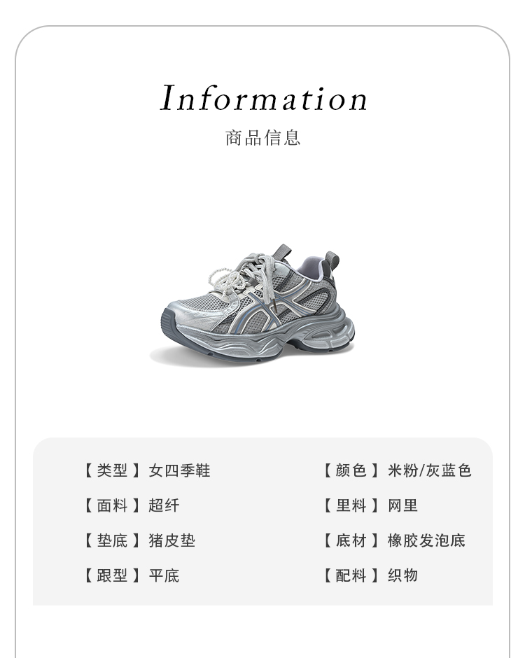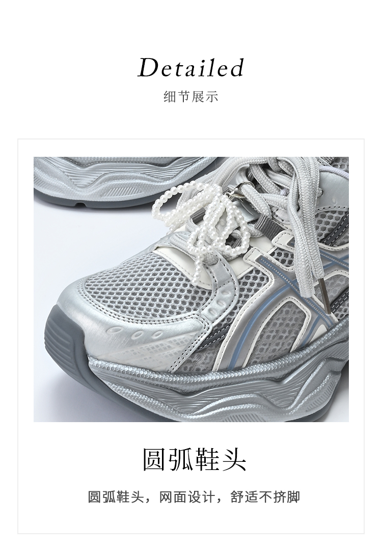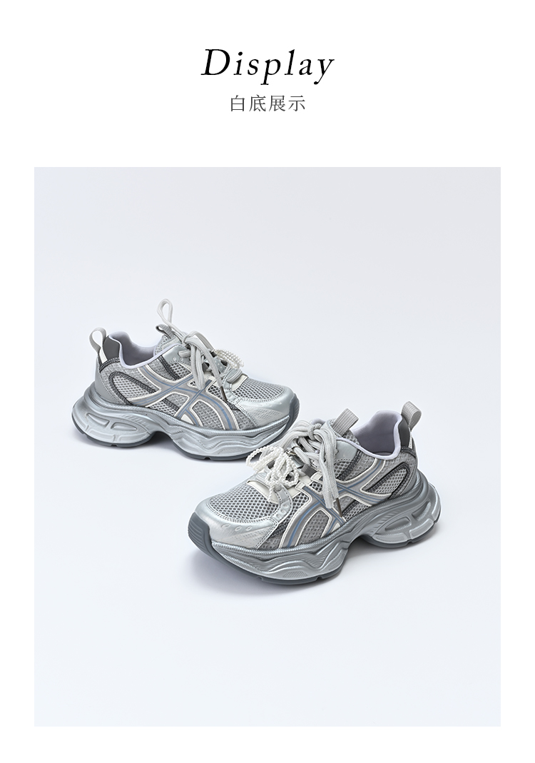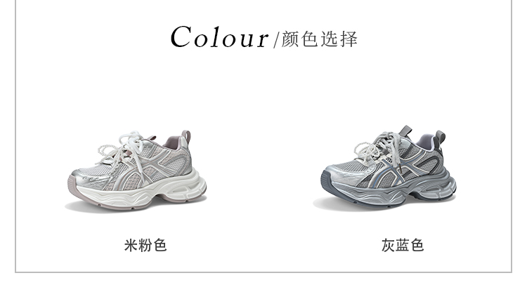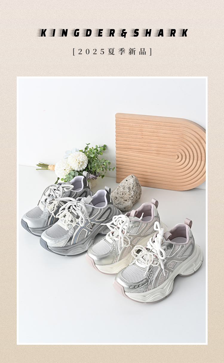 经典鲨2025夏季新款时尚韩版网状透气舒适系带跑步休闲老爹鞋女KW219-529061