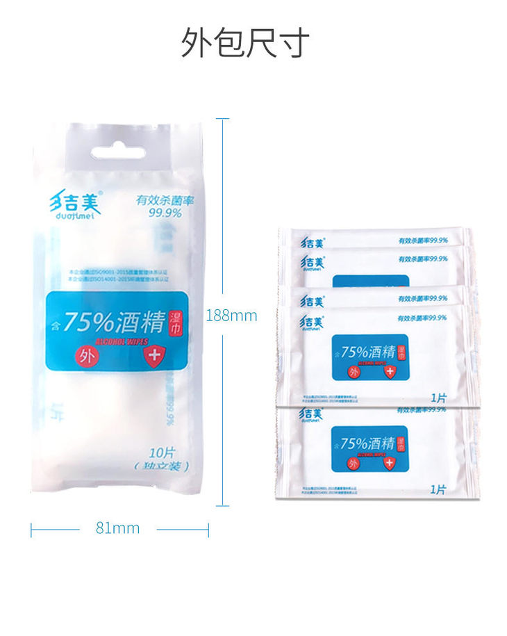 多吉美75%酒精湿巾20包(200片),单片独立包装