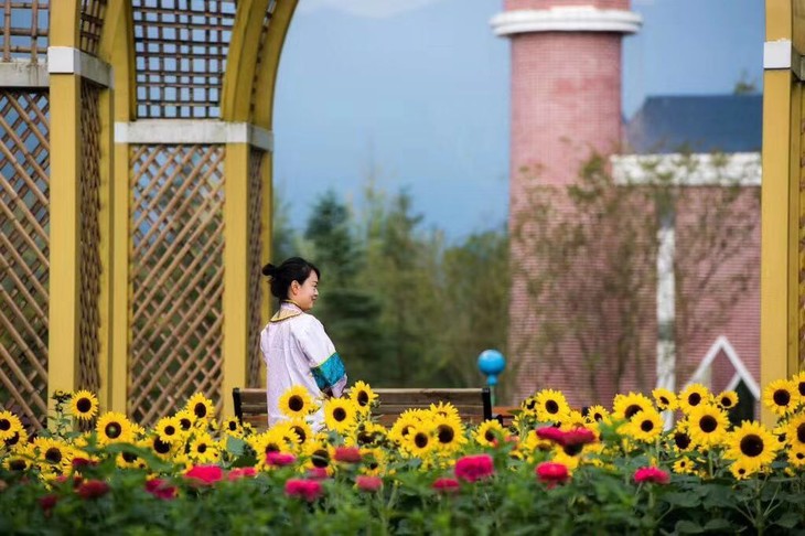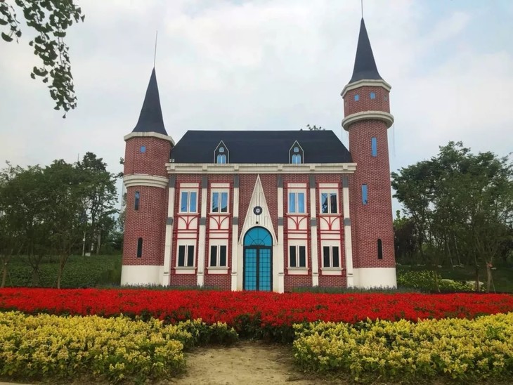 古堡,向日葵,蓝天白云,这是令人向往的童话世界~