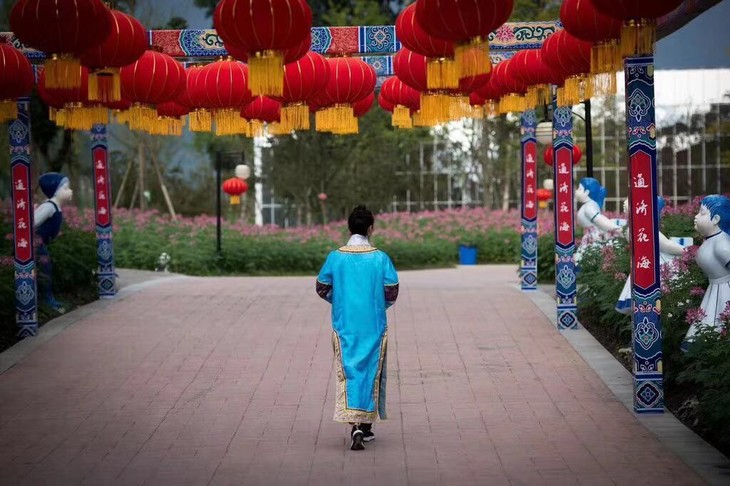 走在花海特别布置的宫门回廊,放佛梦回千年之前。