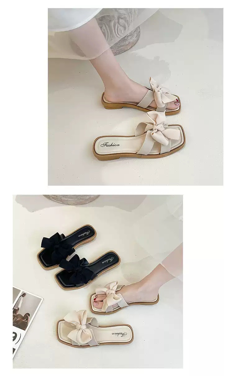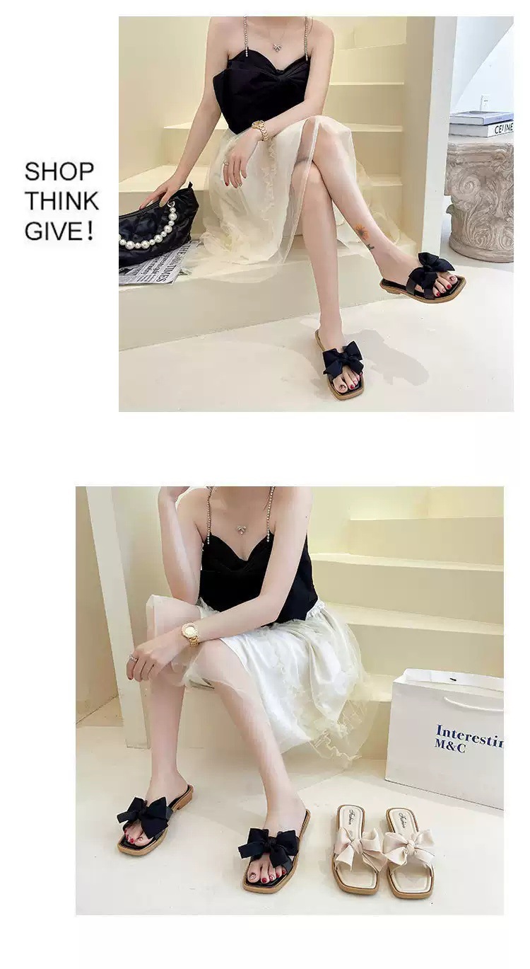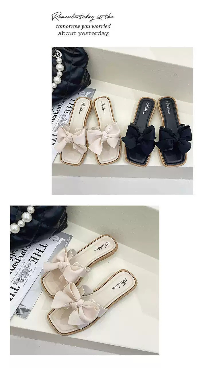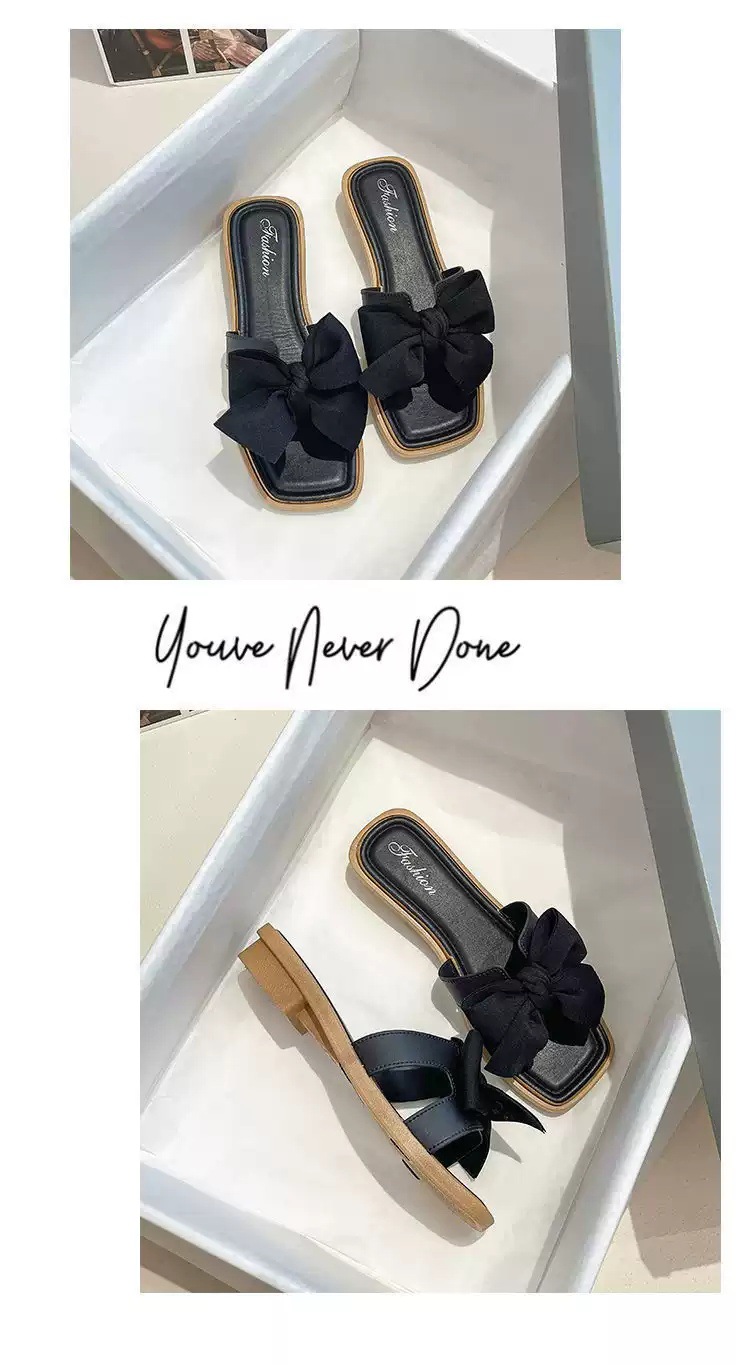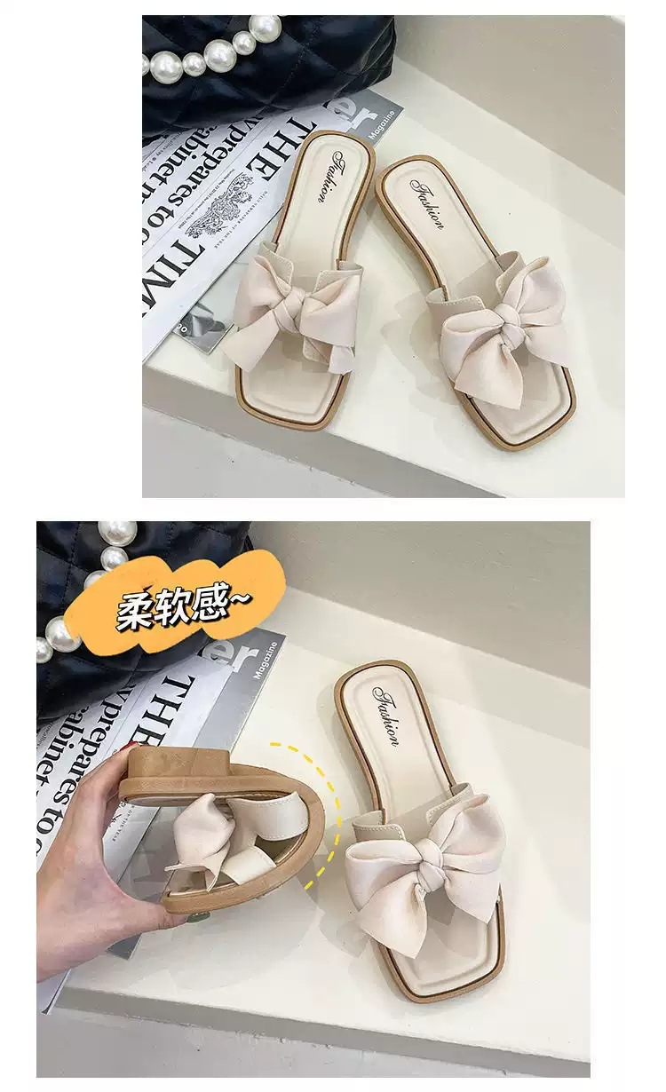 【ins潮流仙女风❗️新款夏季蝴蝶结拖鞋女】防滑耐磨防撞鞋头 柔软舒适 拖鞋女韩版外穿气质时尚百搭方跟一字拖夏