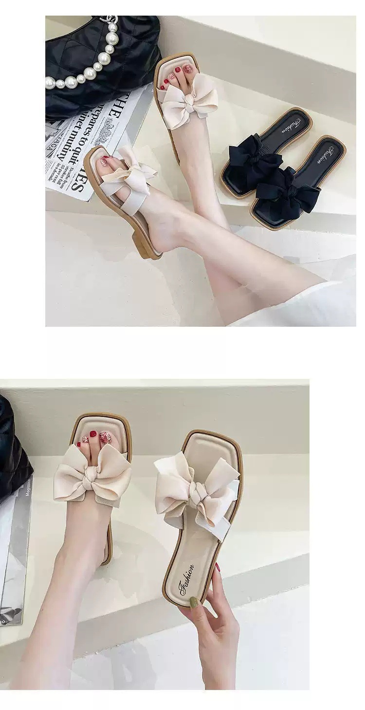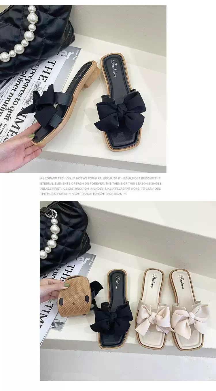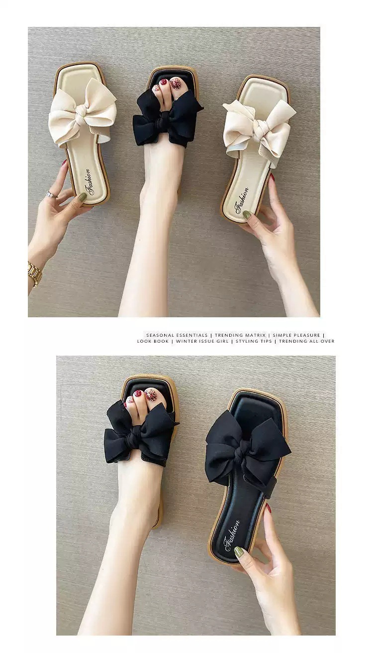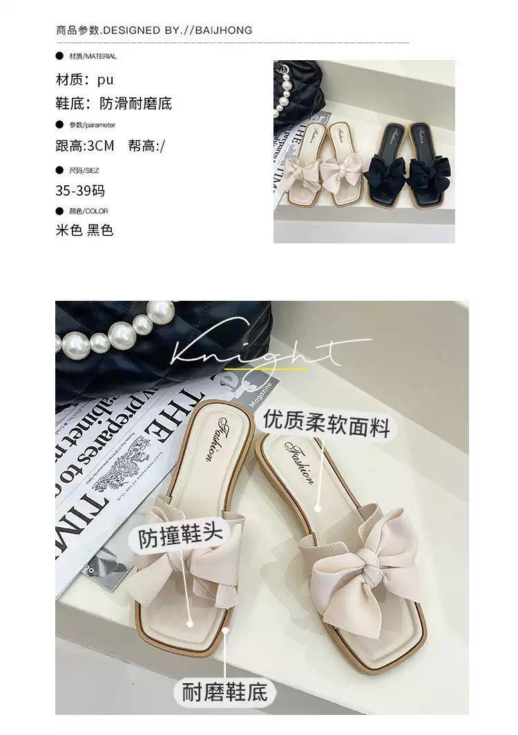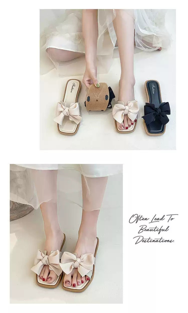 【ins潮流仙女风❗️新款夏季蝴蝶结拖鞋女】防滑耐磨防撞鞋头 柔软舒适 拖鞋女韩版外穿气质时尚百搭方跟一字拖夏