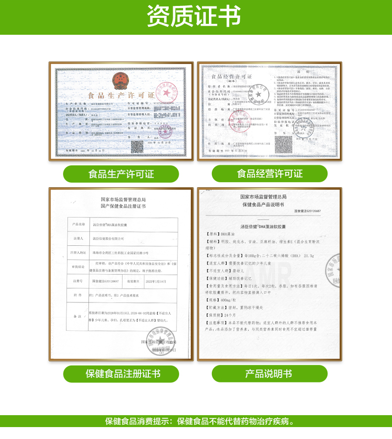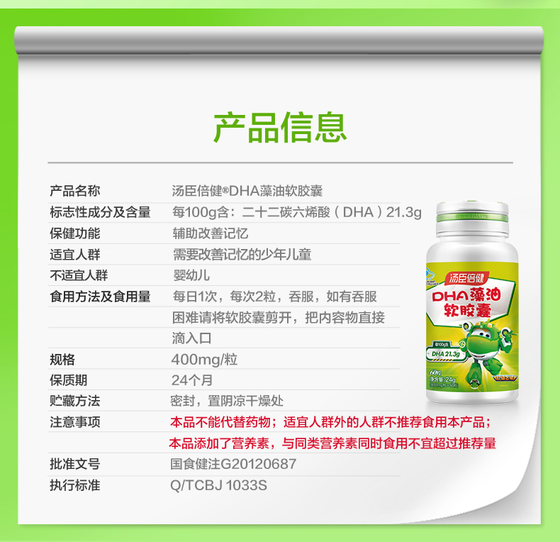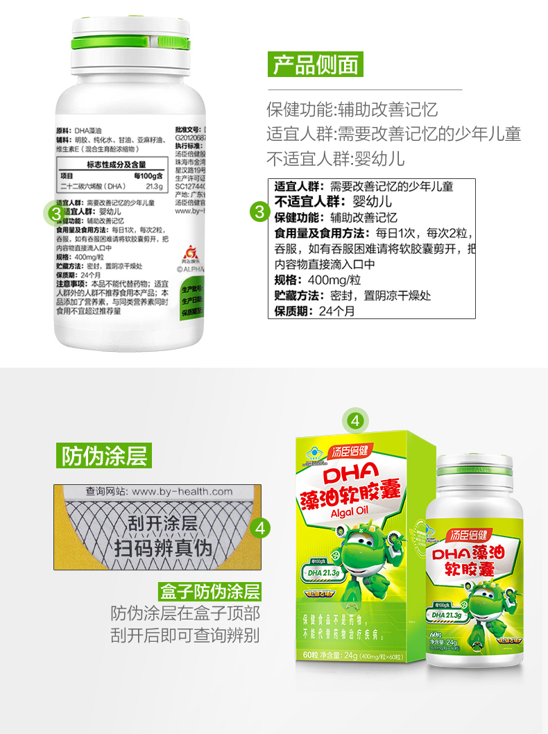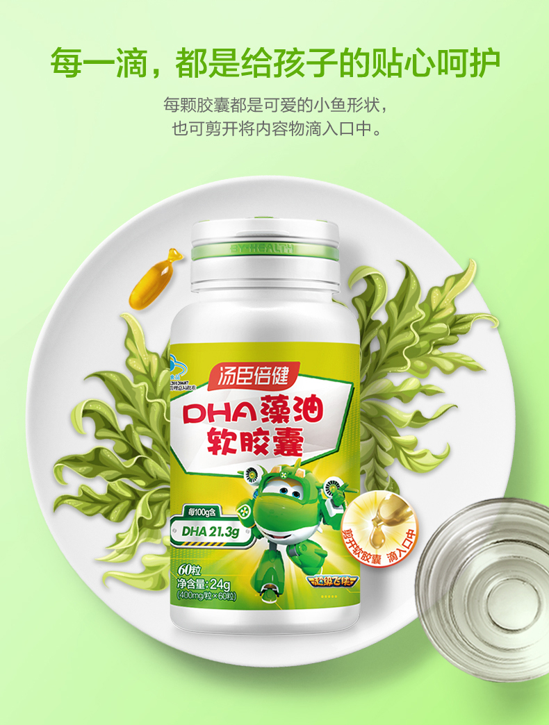 汤臣倍健藻油软胶囊400mg/粒30粒*2瓶DHA
