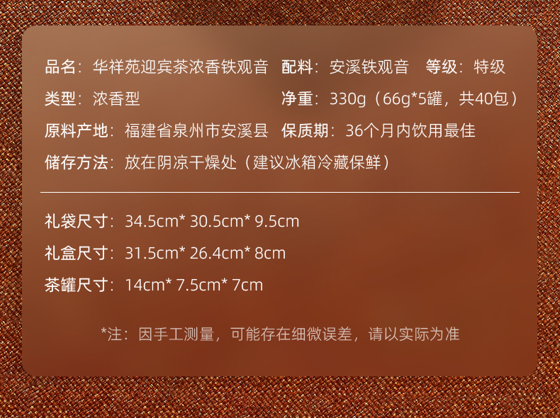华祥苑-330g迎宾庄园茶浓香铁观音