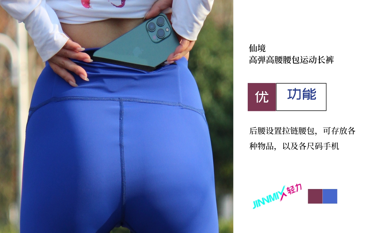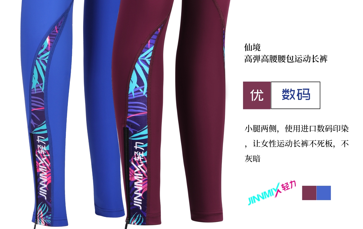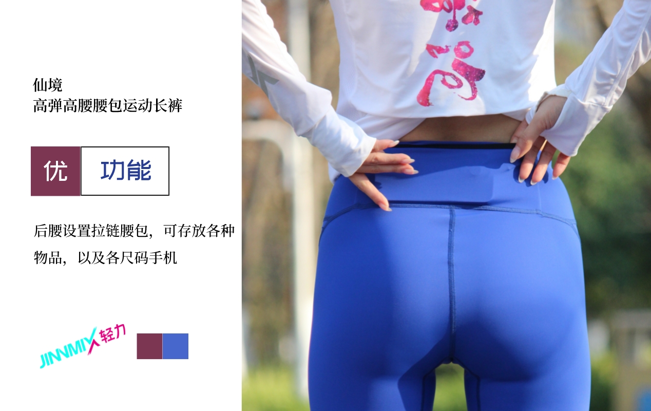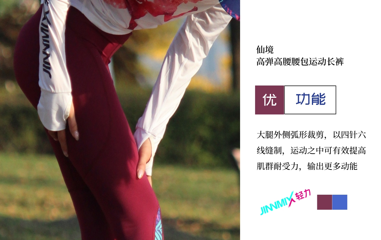 以优质高弹紧身透气面料为底,采取轻力骑行服版型结构,有效束缚腿部肌群提高运动能效;裤脚拉链,更适合各种场合与腿型;后腰腰包,可承载各款尺寸手机;以轻力仙境元素,数码印花于裤侧,赋予女性美感与仙灵气质。