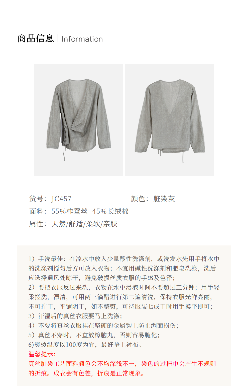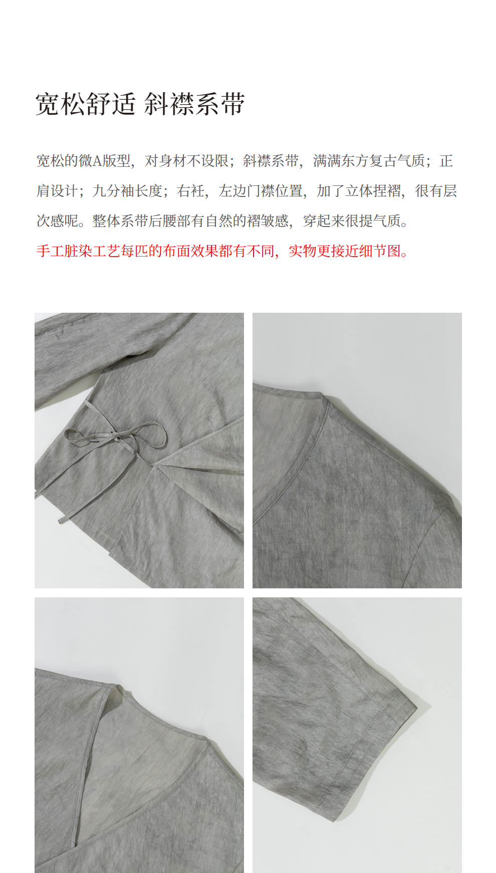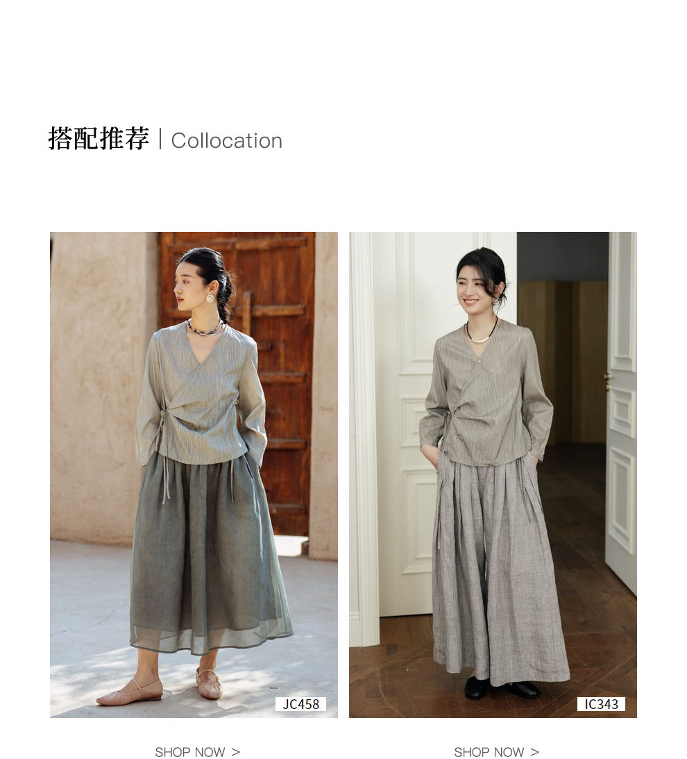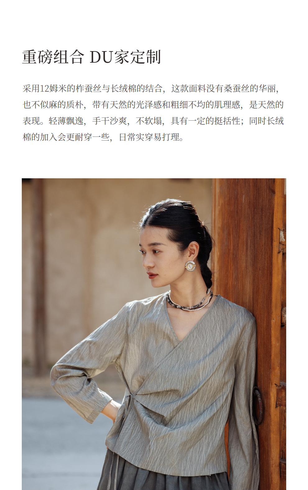 绽放457朵【黑白灰系列·月影】新中式长绒棉柞蚕丝脏染灰带小衫