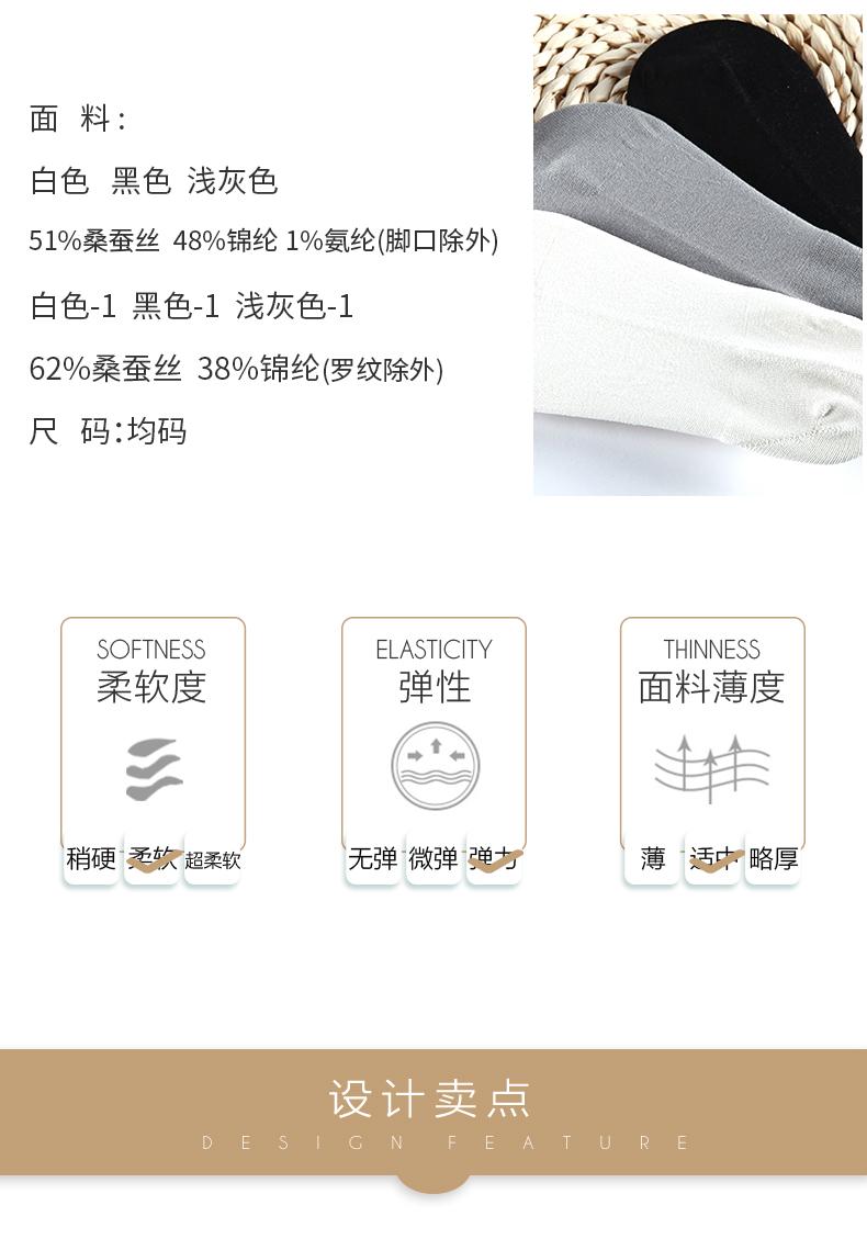 金三塔新品蚕丝女士纯色船袜短袜子女JXQ220
