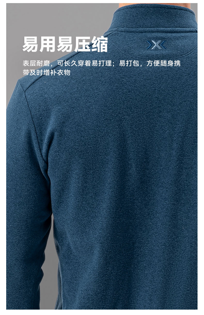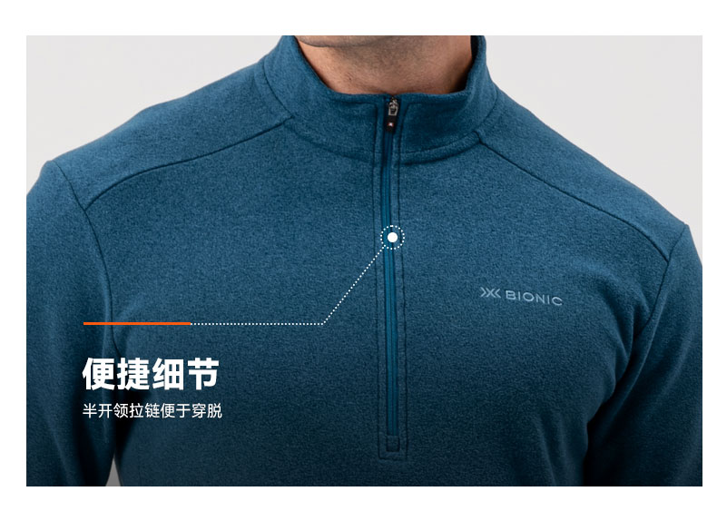 X-BIONIC 旷野抓绒半开领男秋冬保暖透汽轻量徒步中间层长袖T恤 24725N