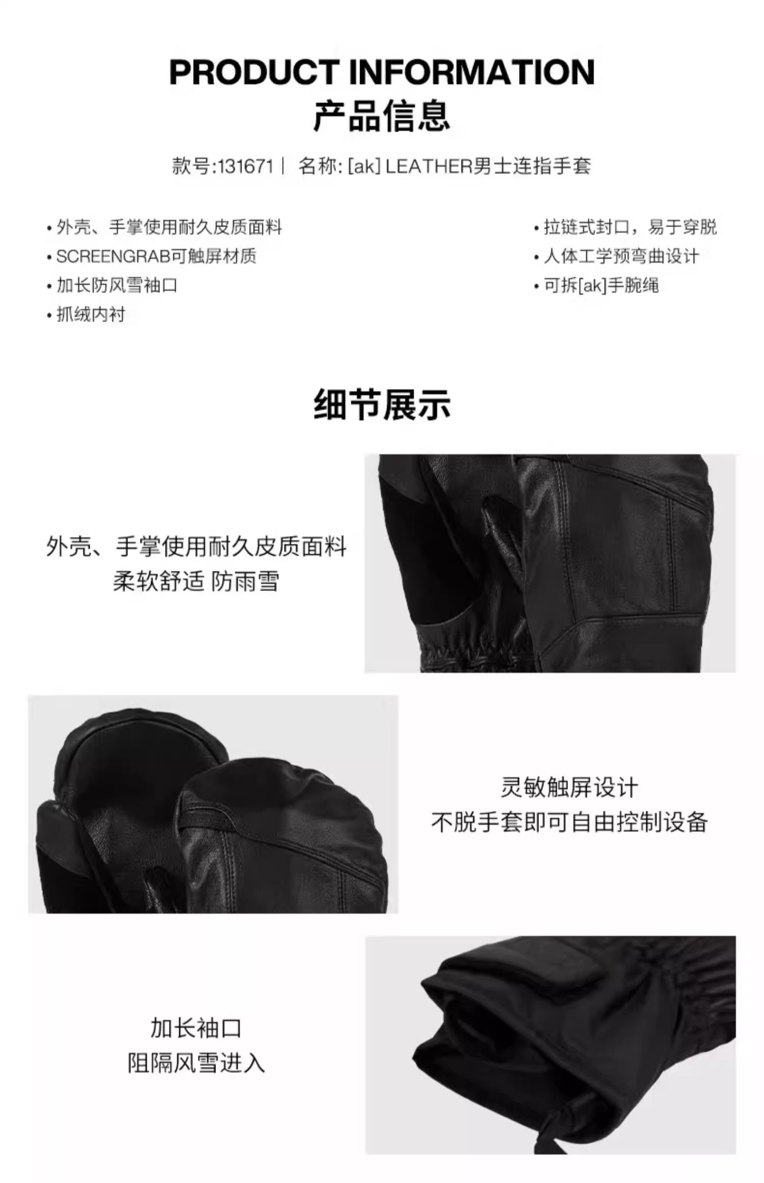 【AK六五折】BURTON伯顿官方 [ak]LEATHER 全皮滑雪手套连指保暖手套131671